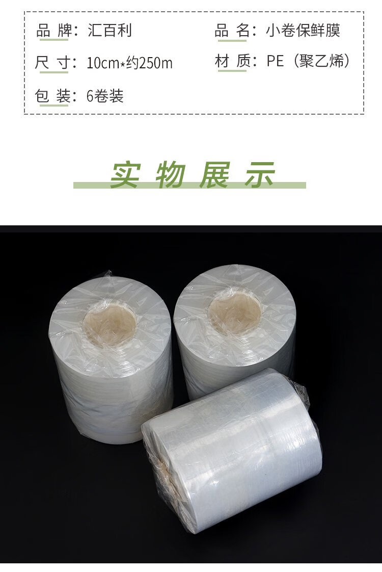 Huibali disposable cling film take-out packaging film lunch box sealing cling film household width 10cm long 250 meters 6 rolls