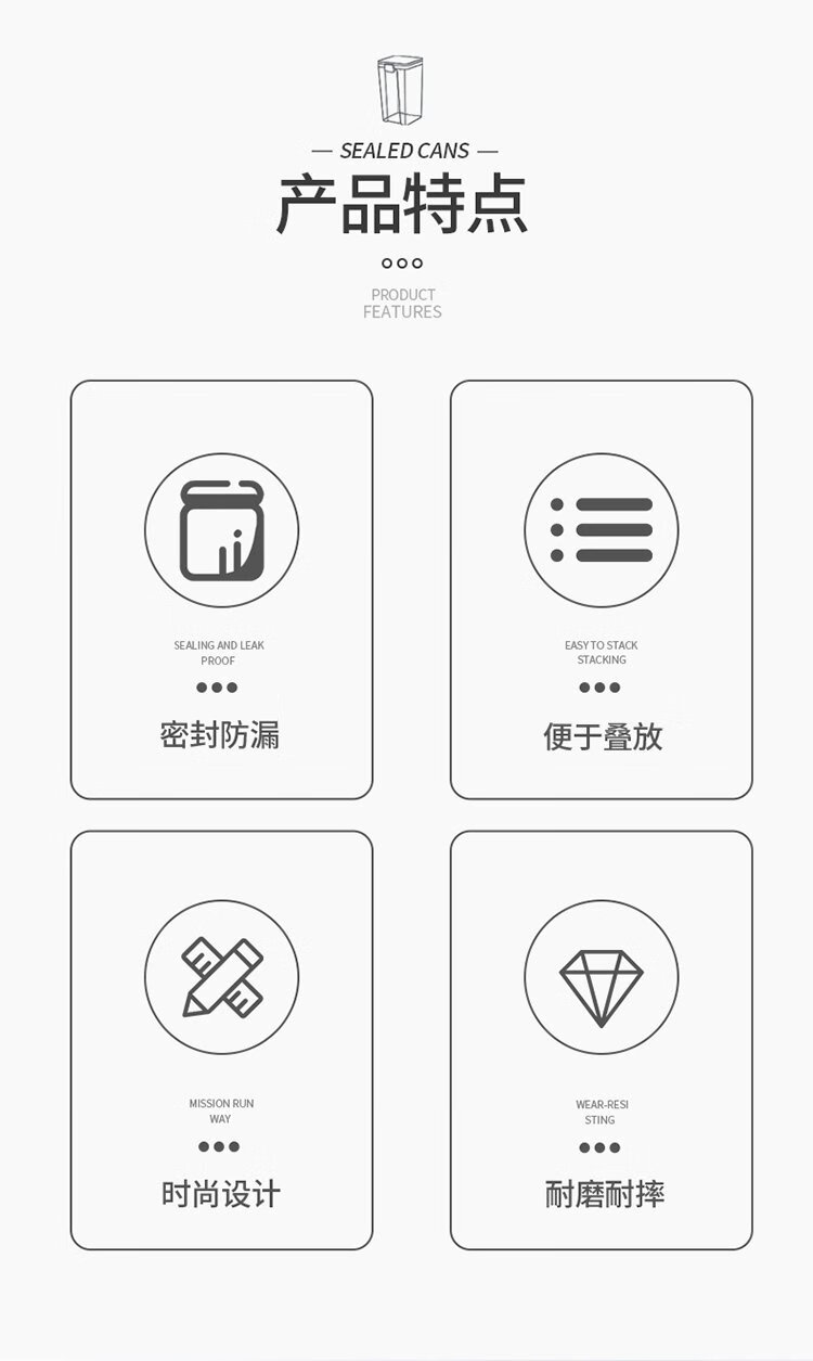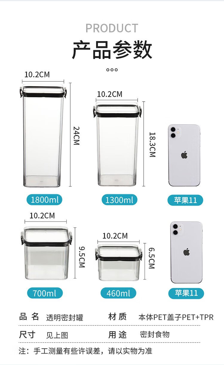 Baijie storage jar fresh-keeping box sealed jar storage box grain jar candy dry goods snacks sealed storage bottle 700ml*3