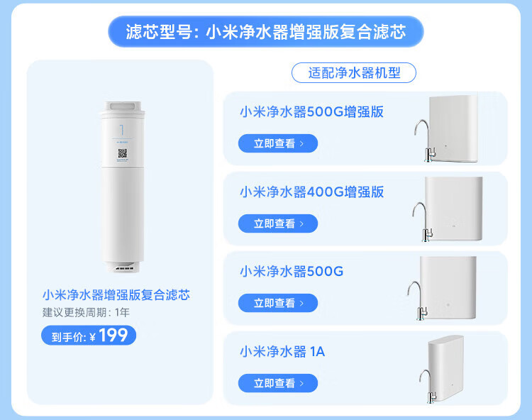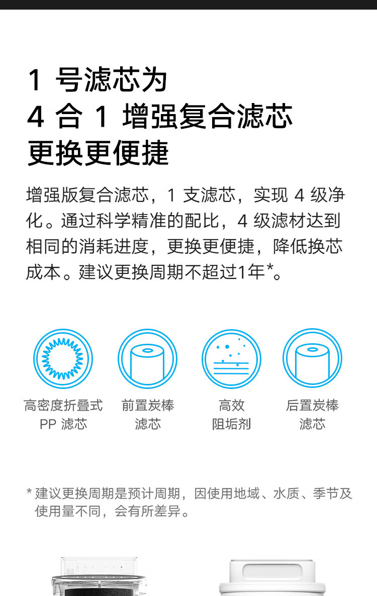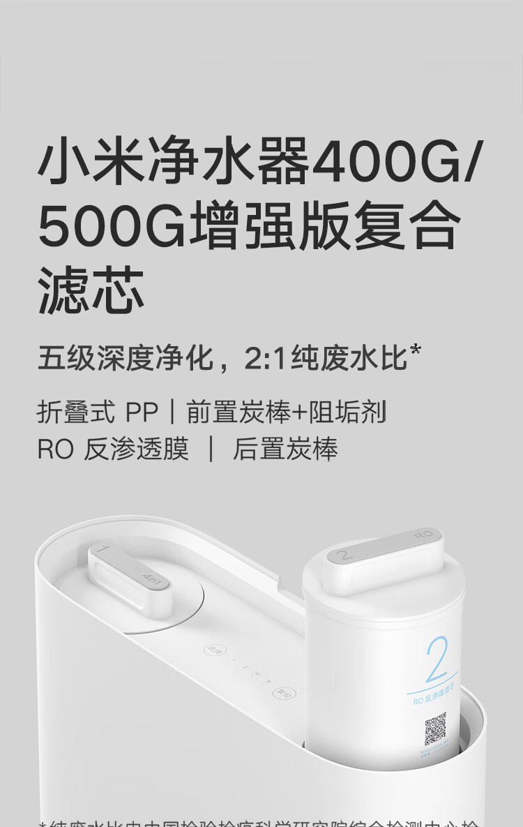 Mijia Xiaomi water purifier enhanced version composite filter element is suitable for Xiaomi water purifier 500G/enhanced version 400G enhanced version 1A (kitchen type)