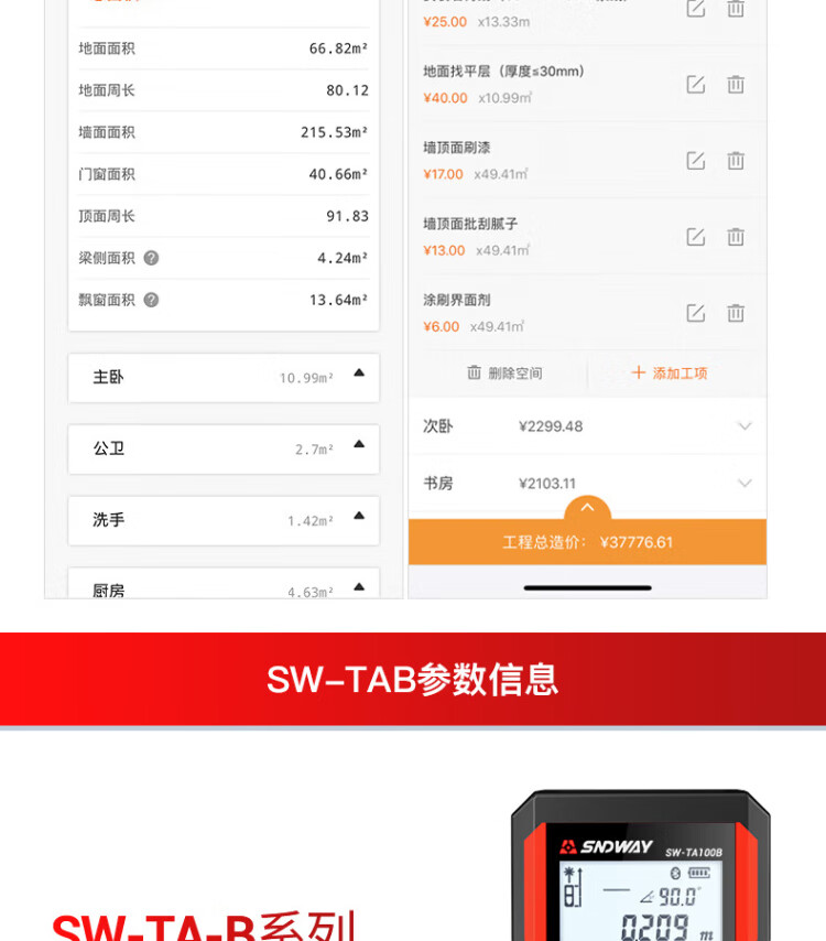 Shenda Wei measuring room instrument laser range finder high-precision infrared measuring ruler indoor electronic ruler laser ruler SW-TA100