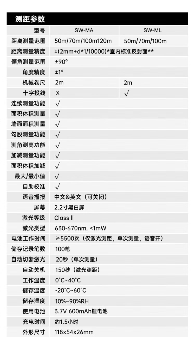 Shendawei laser rangefinder high-precision infrared cross projection line horizontal electronic measuring ruler measuring room instrument SW-M100L