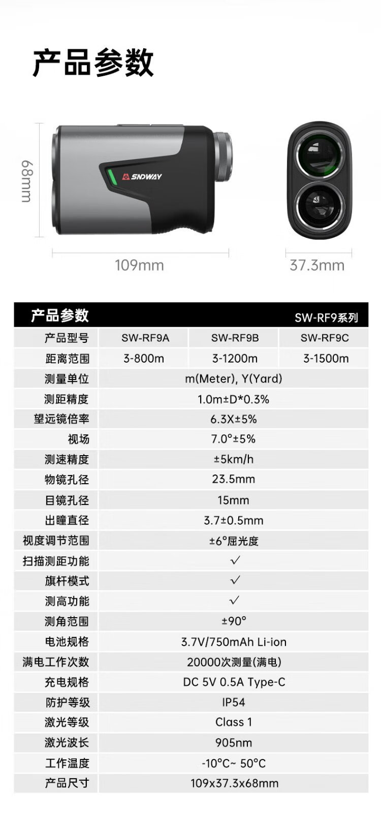 Shendawei rangefinder telescope laser infrared speed measuring instrument golf outdoor high-precision electronic ruler SWRF9A