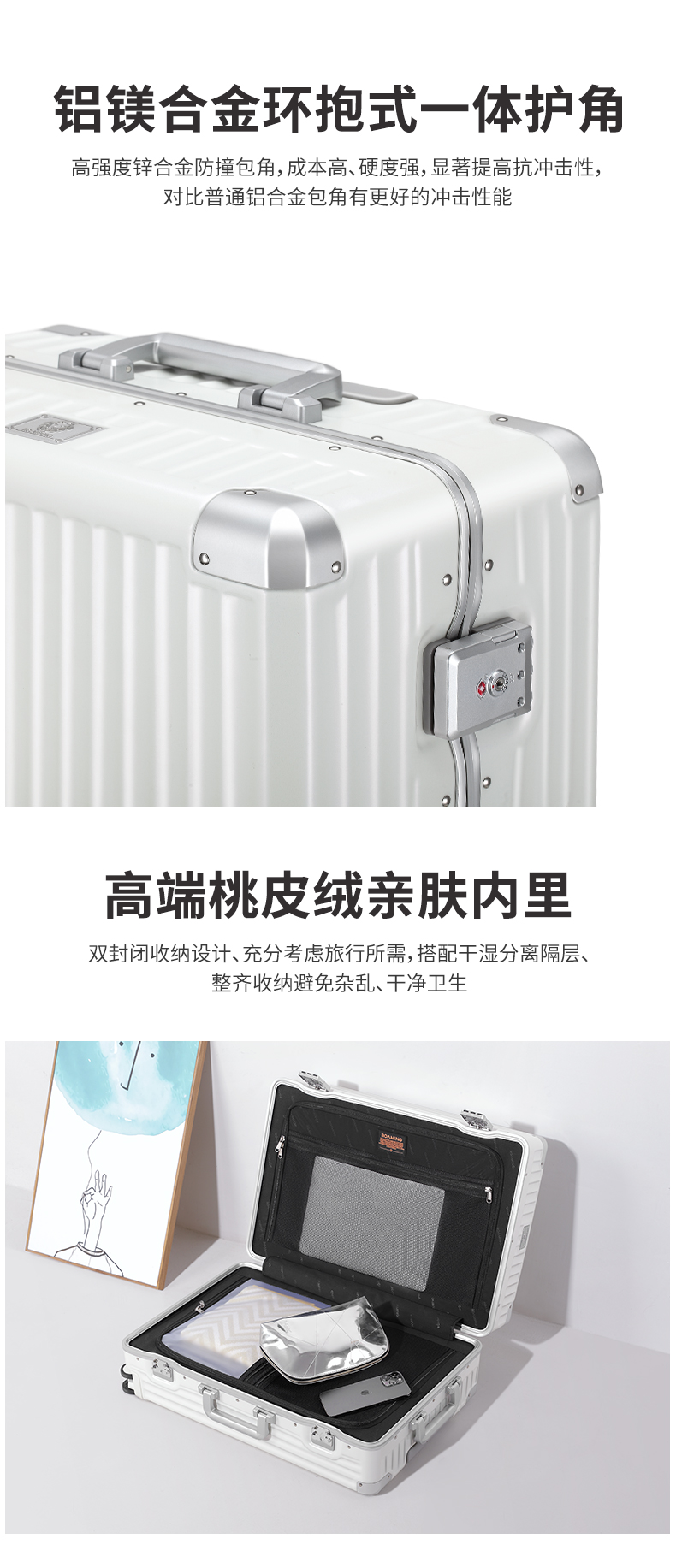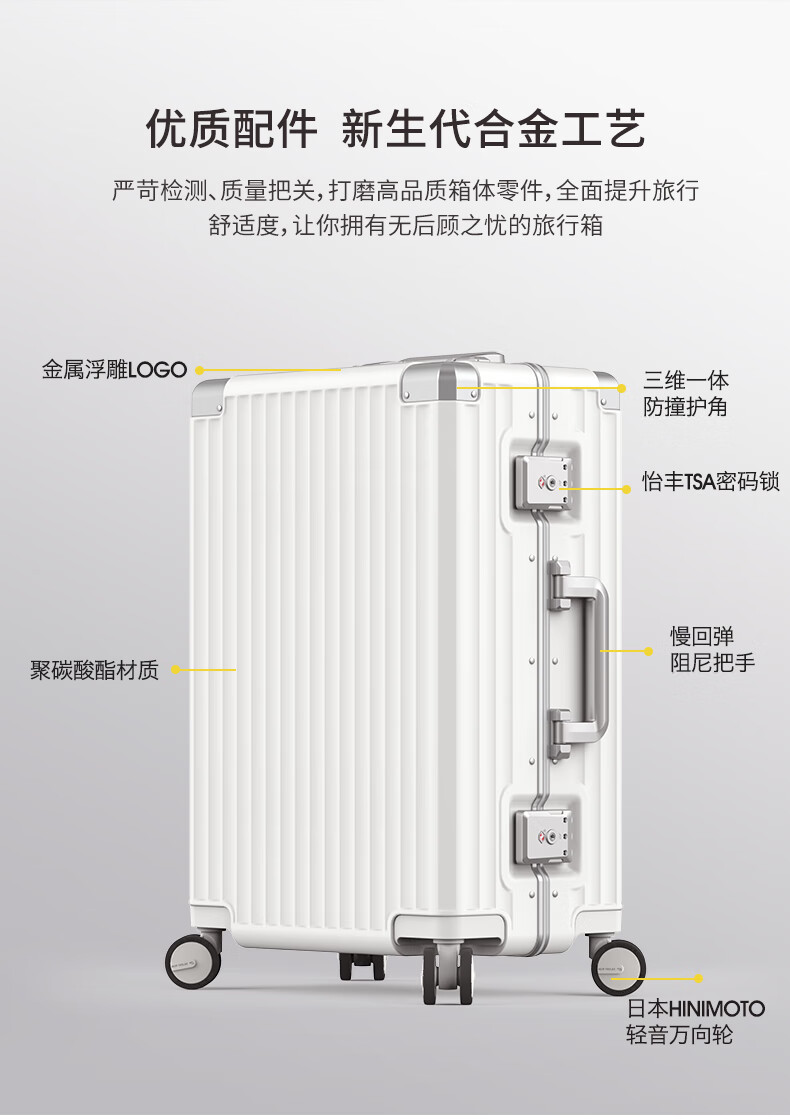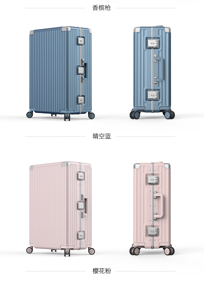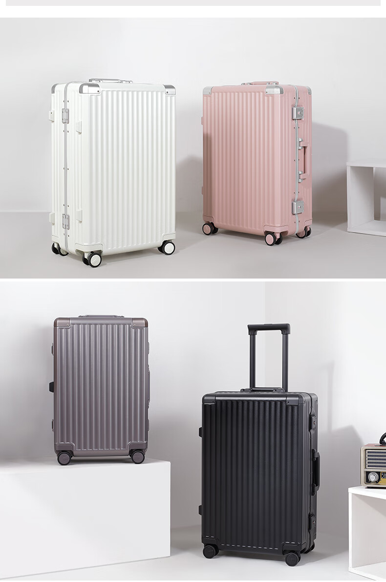 Roaming suitcase trolley case large capacity men's and women's high-looking travel luggage password case leather case 24-inch champagne gun