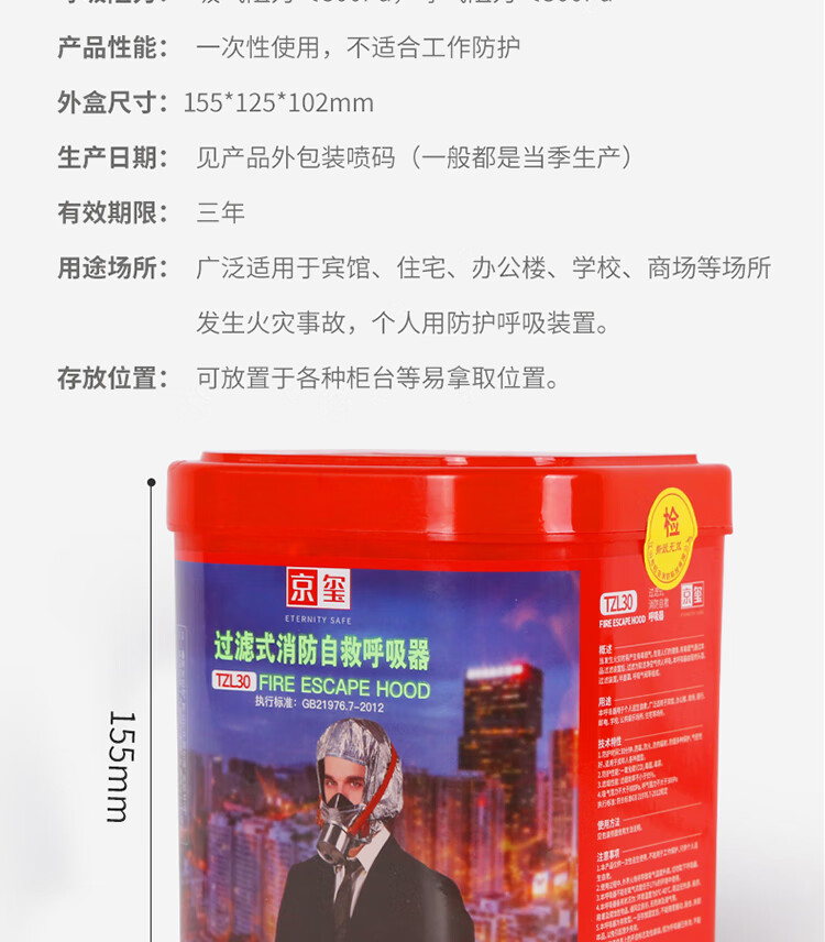Jingxi gas mask fire mask anti-smoke fire mask 3C certified escape filter self-rescuing respirator TZL30