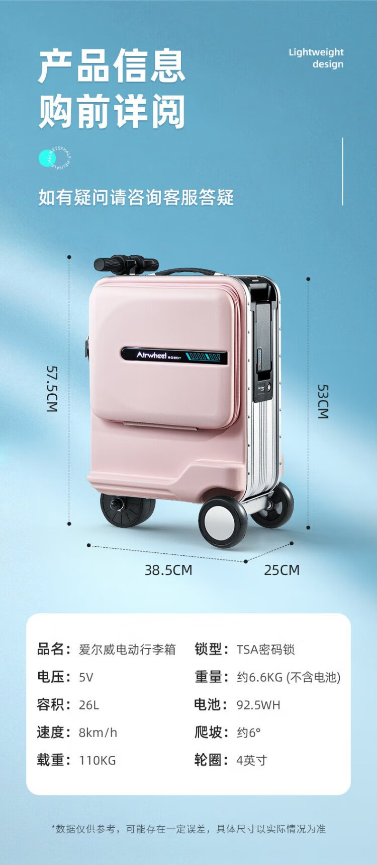 Airwheel Airwheel electric suitcase can ride, smart trolley case, travel boarding case, 20-inch suitcase, can sit