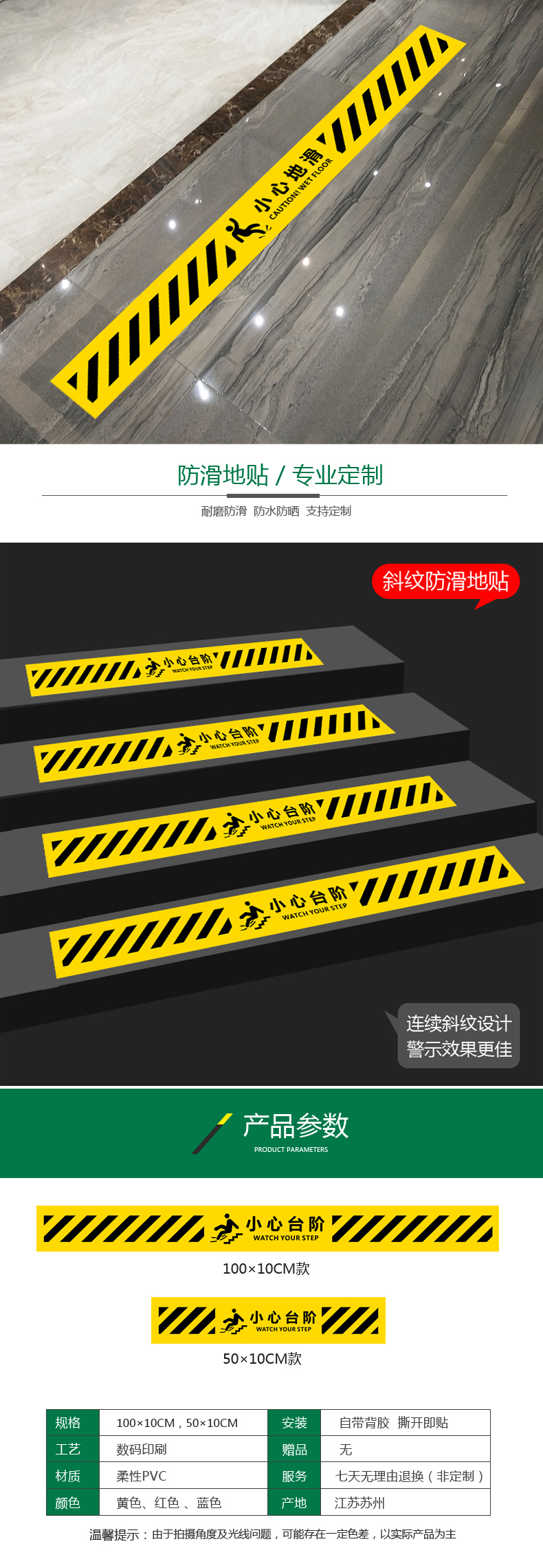 BELIK Beware of step floor warning stickers 1 piece 100*10CM twill non-slip waterproof and wear-resistant floor stickers shopping mall school workshop warning sign sticker DT-17