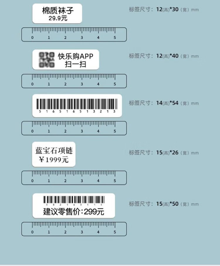 Jingchen Thermal Paper Label Paper D11/D110 Clothing Merchant Super Beauty Waterproof Printing Paper 12*30mm-White Suitable for Various Scenarios 7.5m