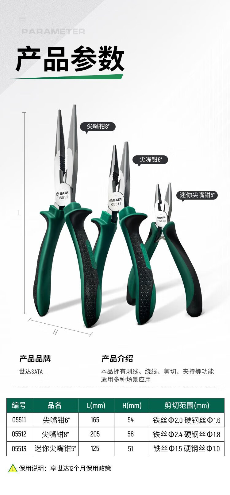 SATA 05512 Tools Needle Nose Pliers Electrician Pliers Needle Nose Pliers Multi-Function 05512 Needle Nose Pliers 8