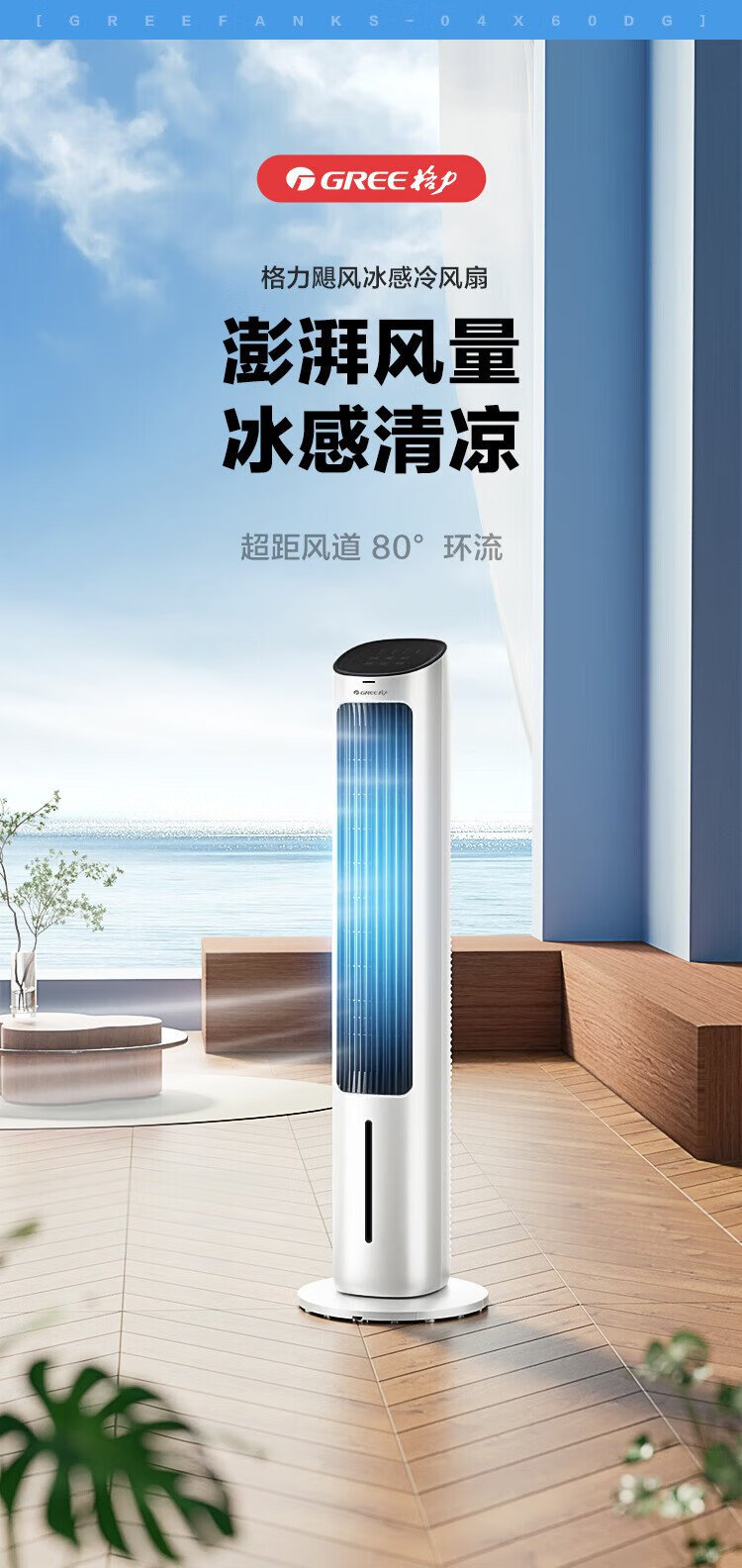 GREE Powerful Refrigeration Household Air Conditioning Fan Humidification Cooling Fan Remote Control Purification Floor Standing Humidification Light Sound Cooler Water Cooling Tower Fan Refrigeration Small Air Conditioner KS-04X61Dg