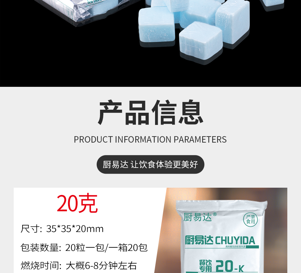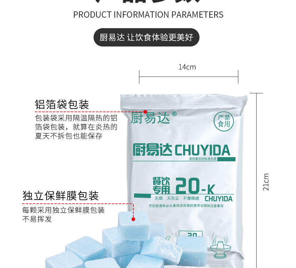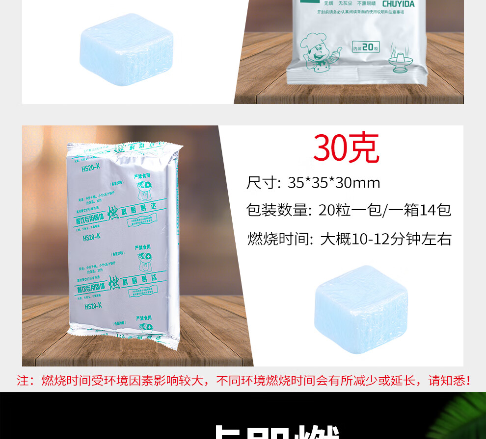 Chuyida solid alcohol block solid fuel wax for hotels, household casserole, small fire boiler, dry pot special burn-resistant paste 30g/tablet 20 capsules/pack 14 packages