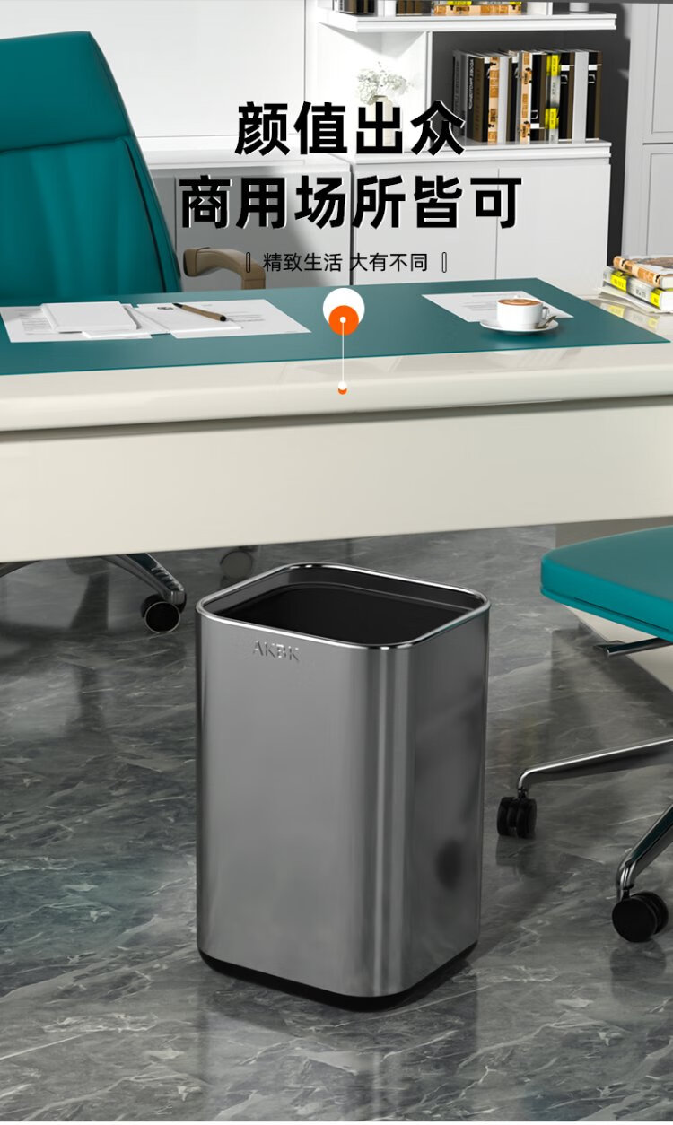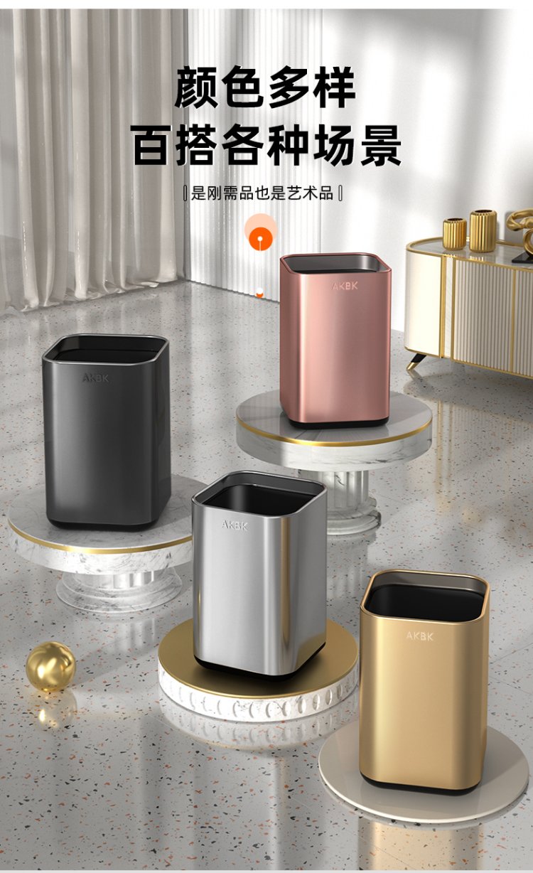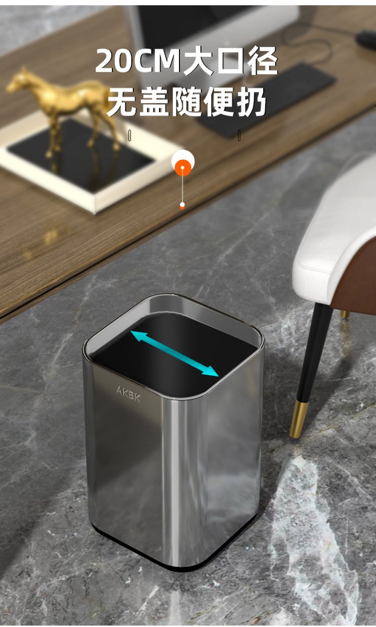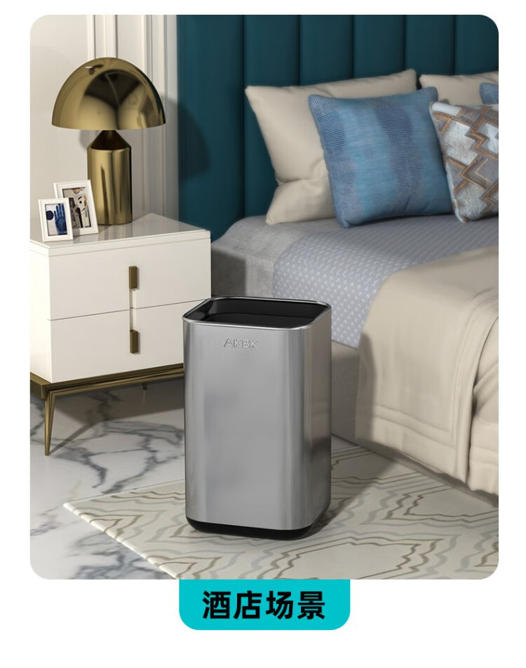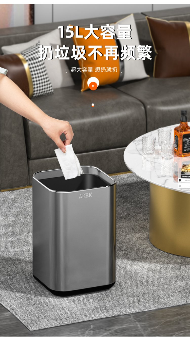AKBK stainless steel trash can 9L silver home living room kitchen bathroom light luxury hotel office large square