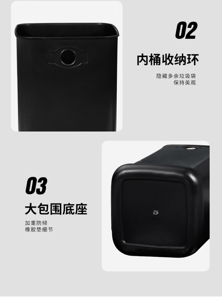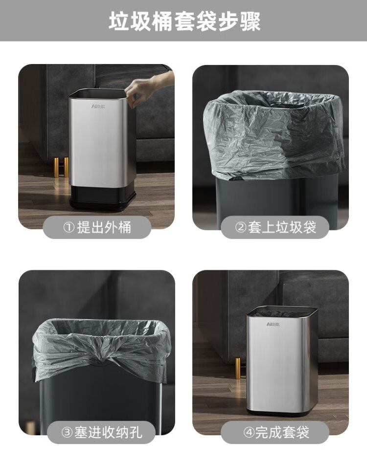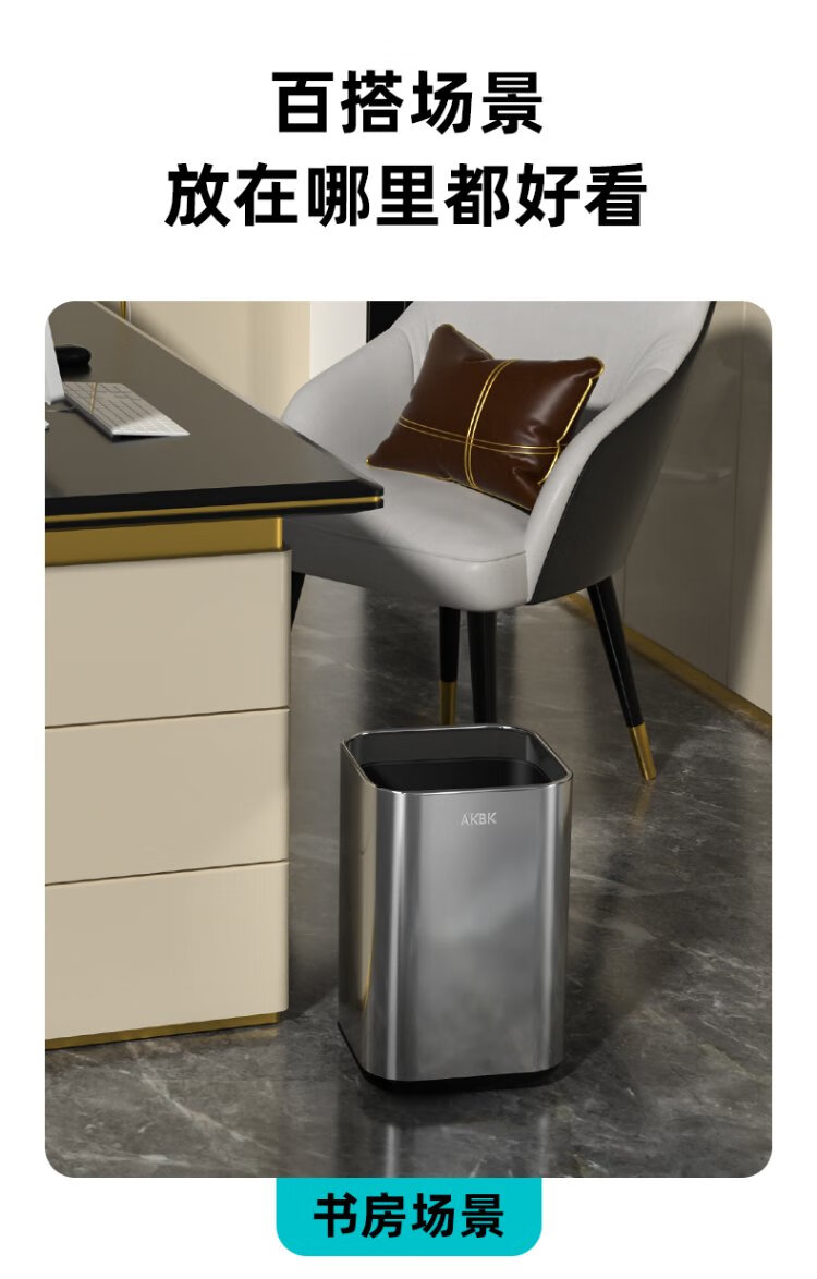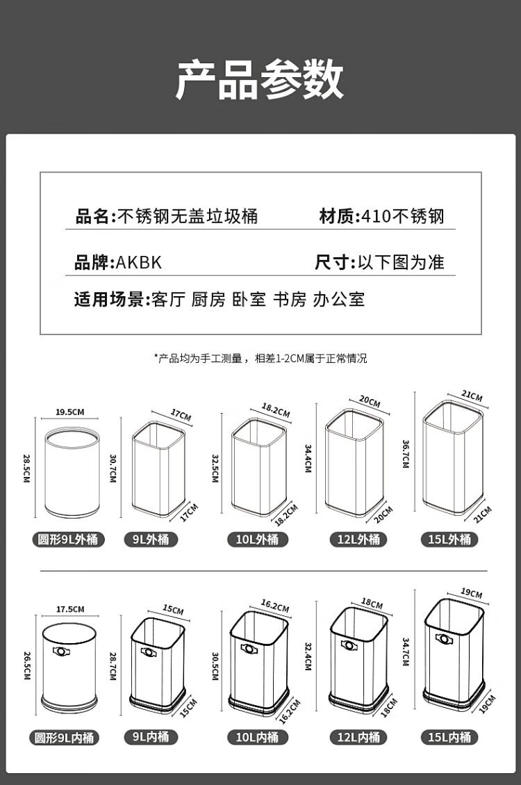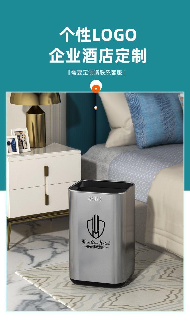 AKBK stainless steel trash can 9L silver home living room kitchen bathroom light luxury hotel office large square