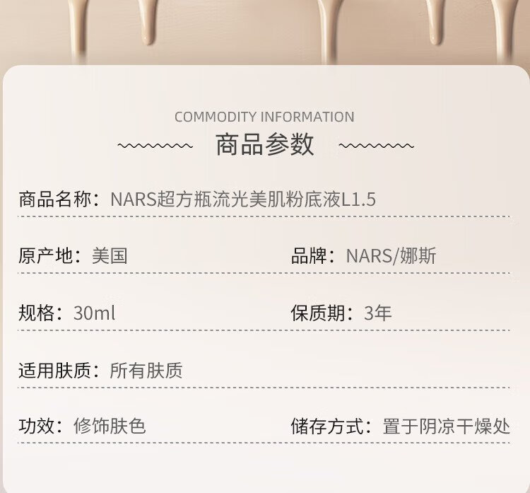 NARS Super Square Bottle Liquid Beauty Foundation L1.5 Neutral One White Asian New Color 30ml Gift for Girlfriend