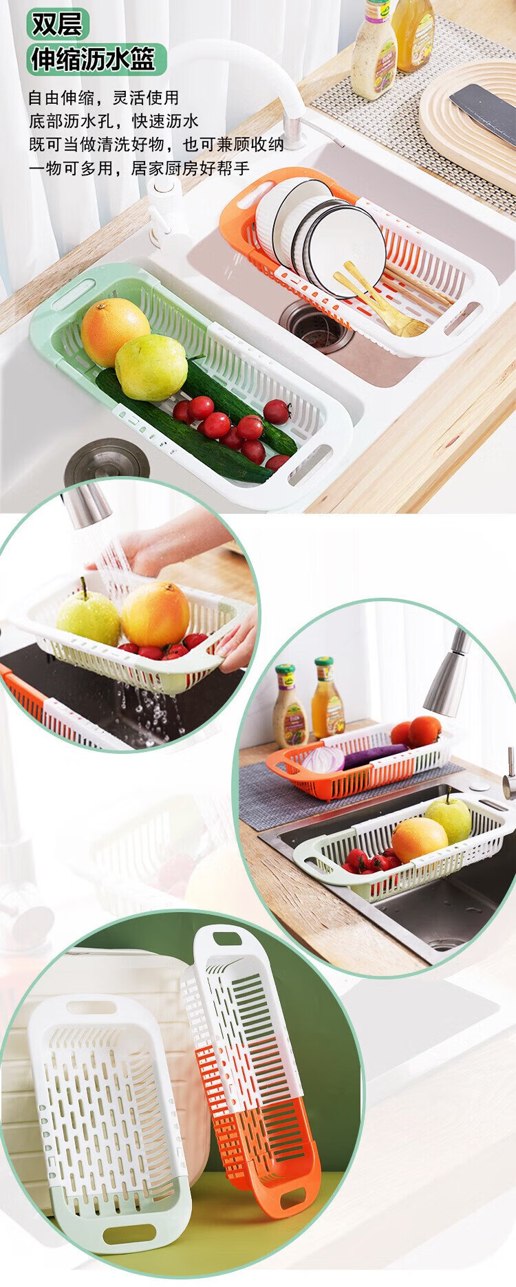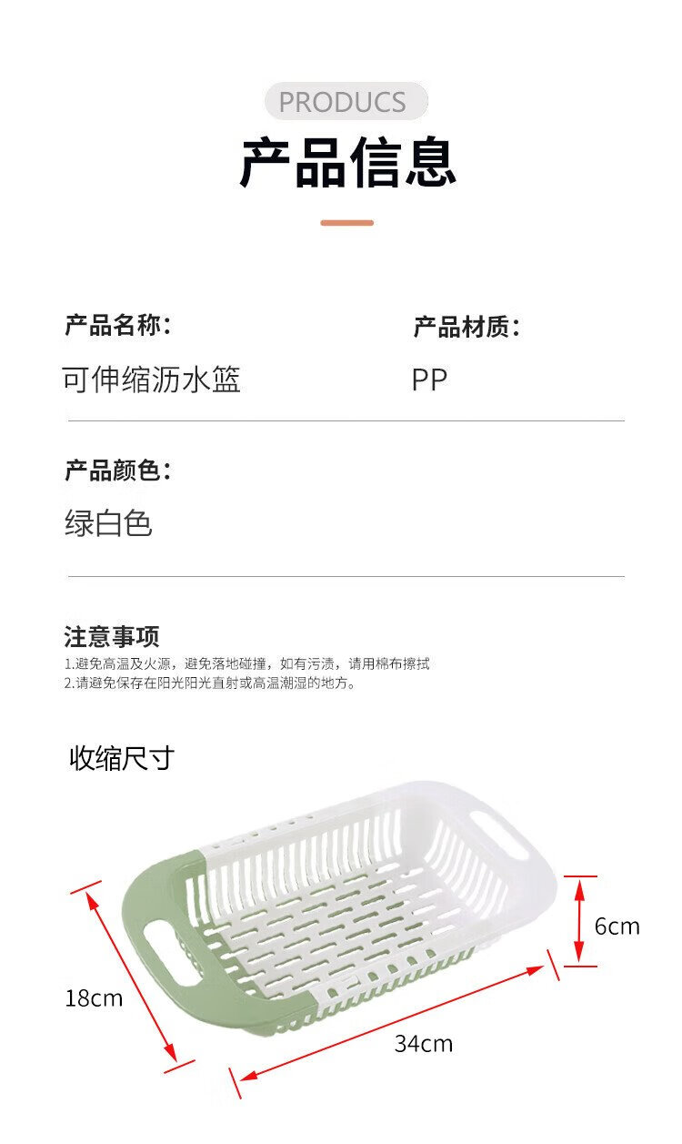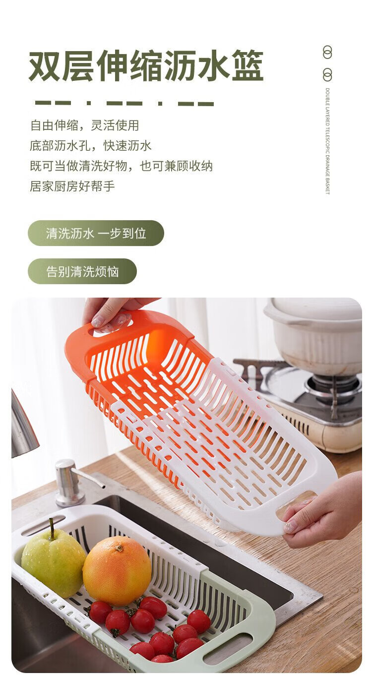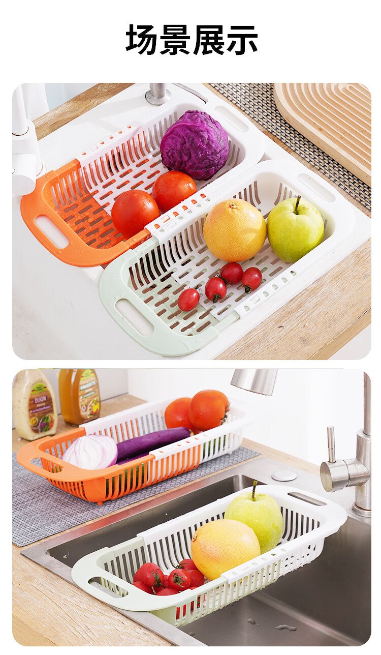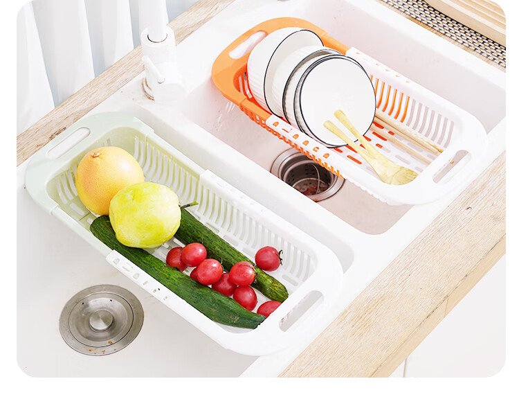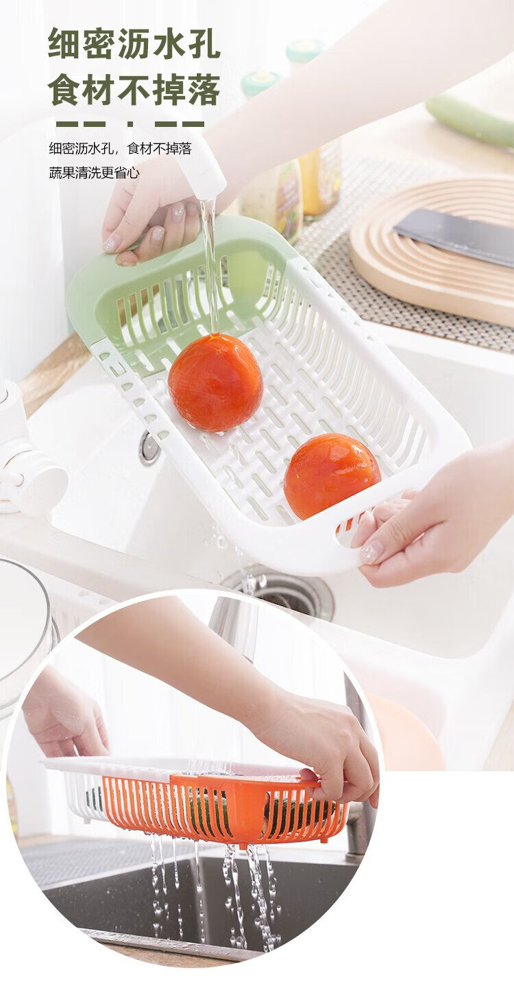 Mengting retractable drain basket vegetable sink kitchen sink pool washing vegetables and fruits plastic water-control storage rack