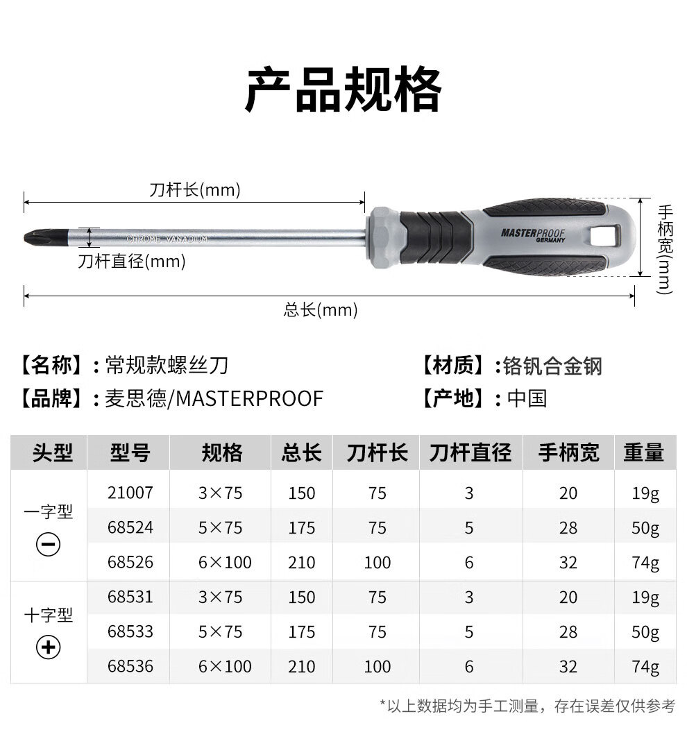 MASTERPROOF single screwdriver cross-shaped home computer screwdriver set screwdriver with magnet 7-piece set