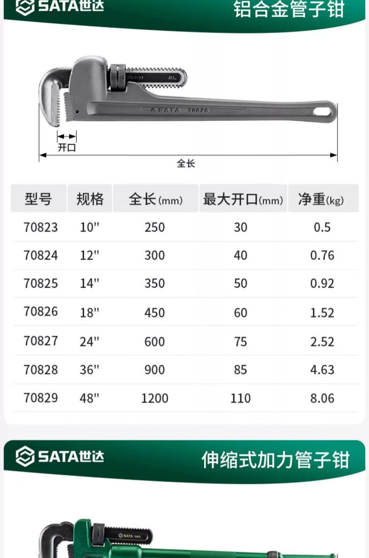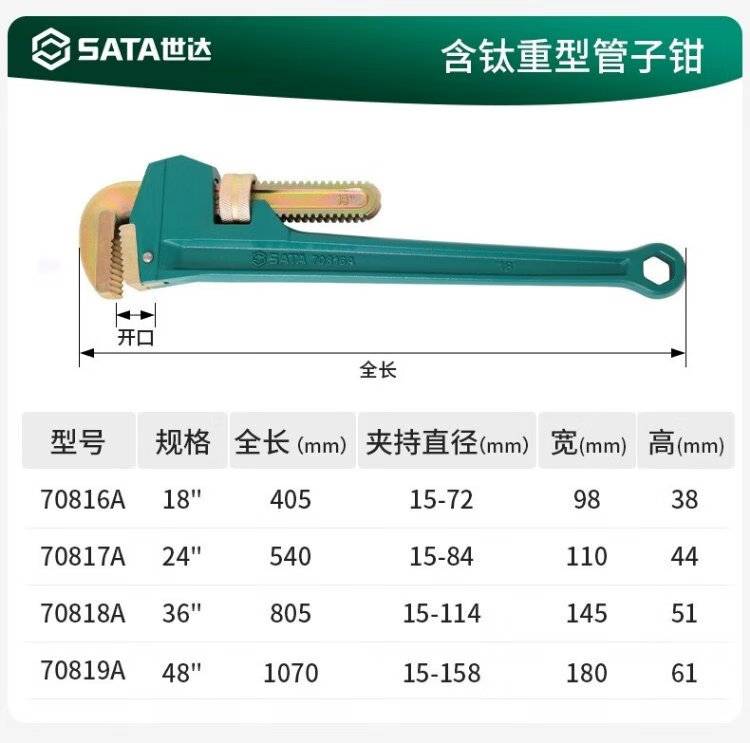 SATA heavy-duty pipe wrench 14 large opening water pipe wrench multi-function self-tightening throat pliers heavy-duty pipe wrench 70815