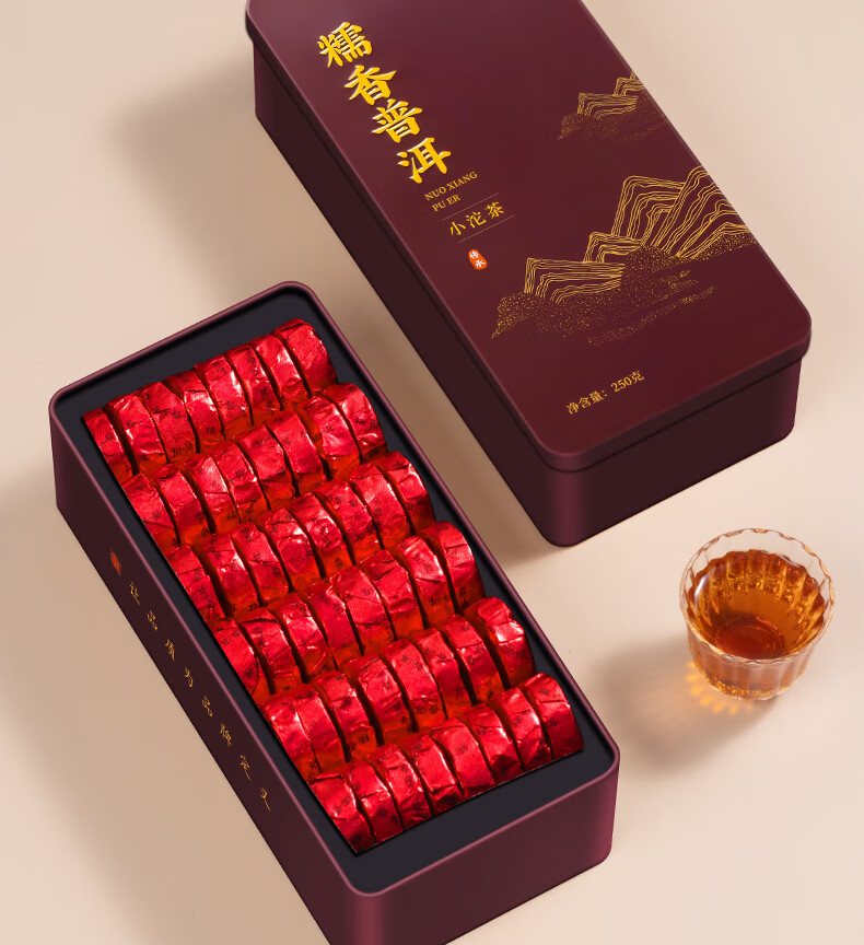 Fumingyuan Pu'er tea, waxy fragrant Pu'er, Xiaotuo tea, cooked tea, black tea, small gold brick New Year's tea gift box 500g