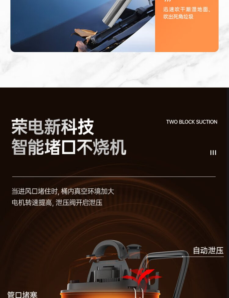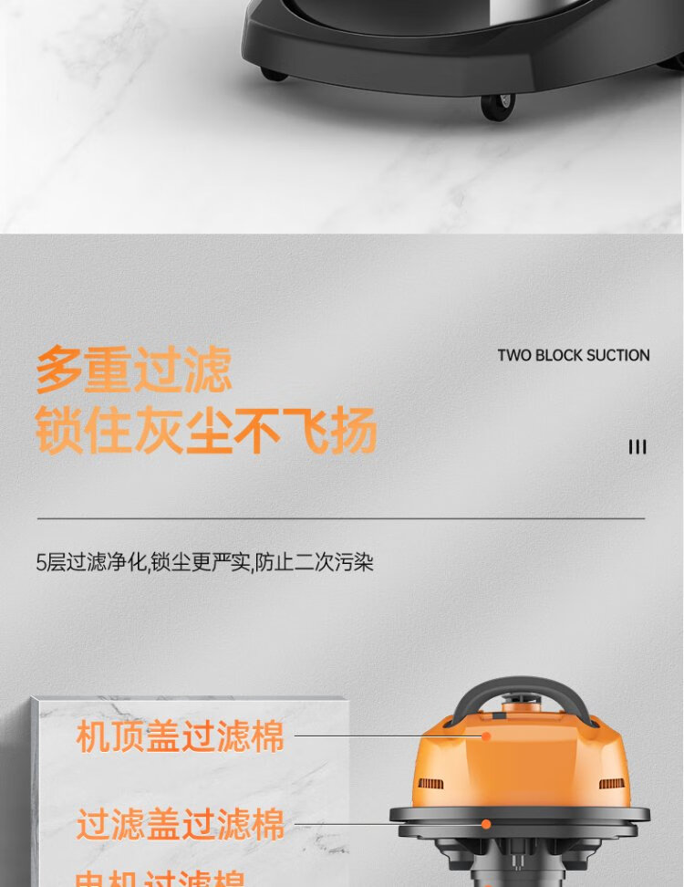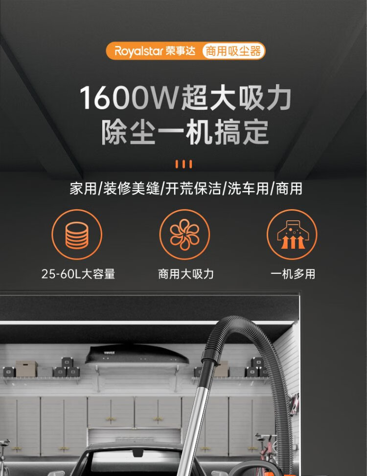 Royalstar Industrial Vacuum Cleaner Household High Suction Decoration Seam Opening Strong High Power Commercial Carpet Hotel Water Absorption 22L RS-XT280A-1