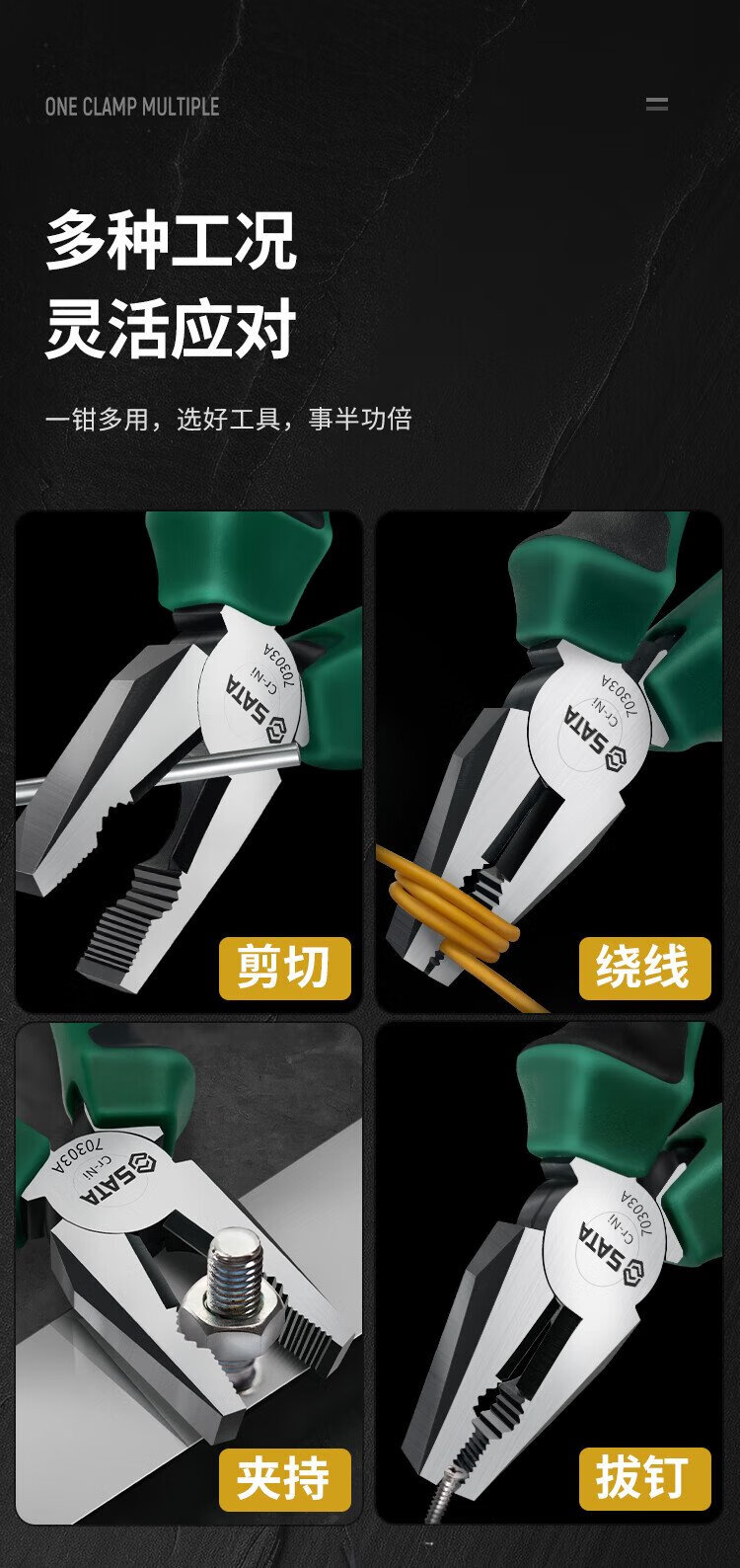 SATA industrial-grade electrician's vise wire cutter 8 inches 70303A wire cutter 8 (new and old models are randomly sent)