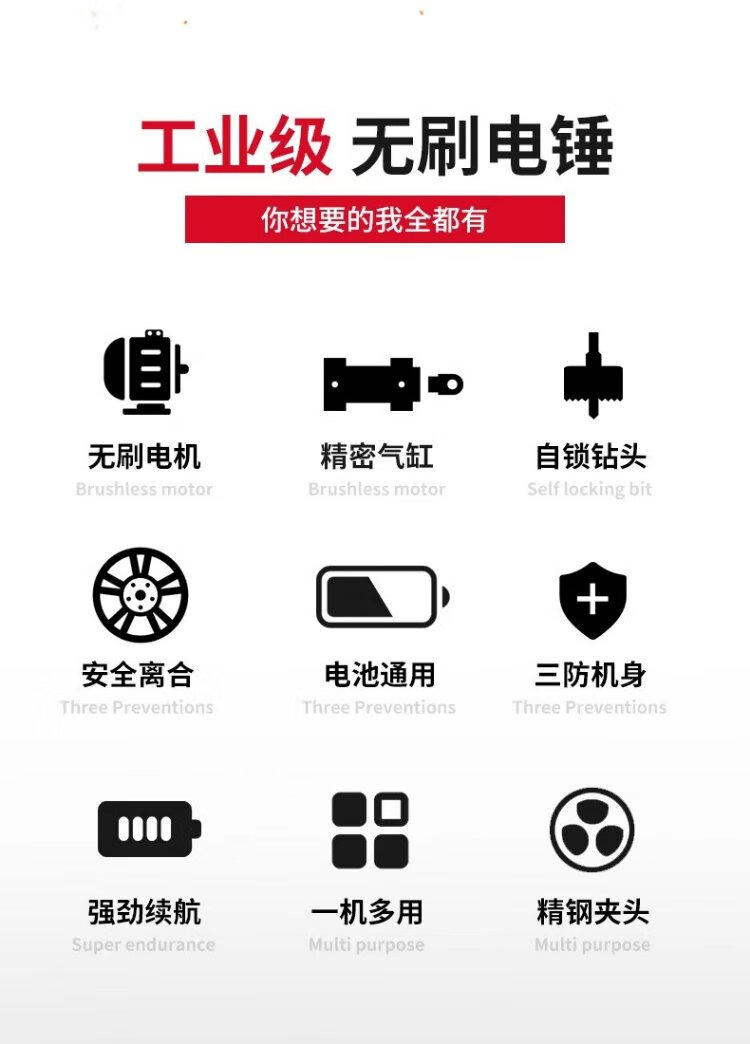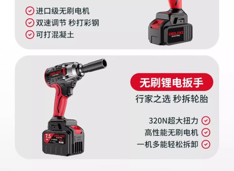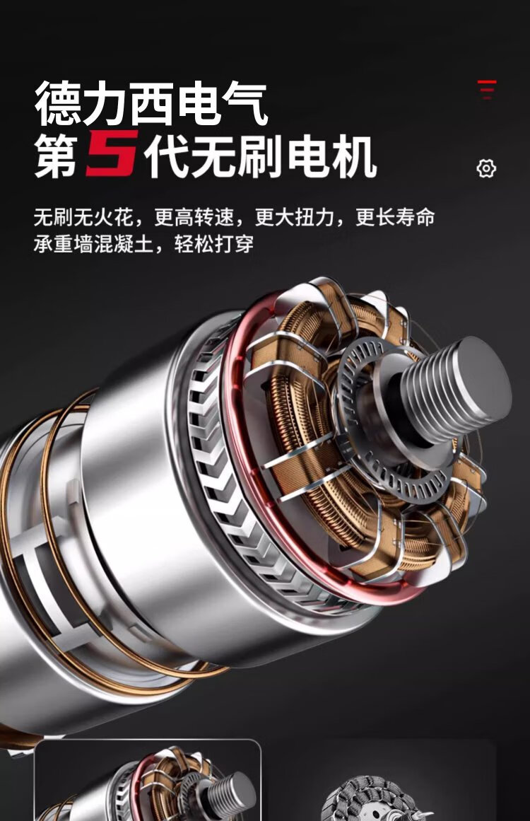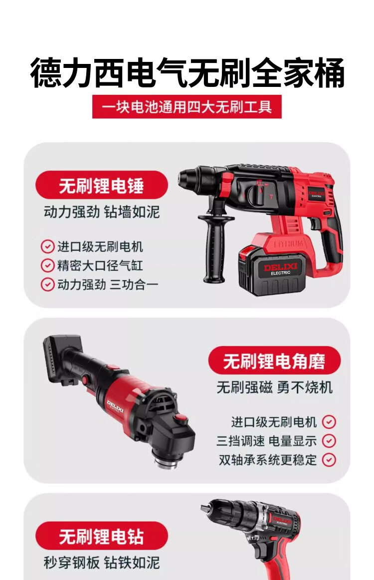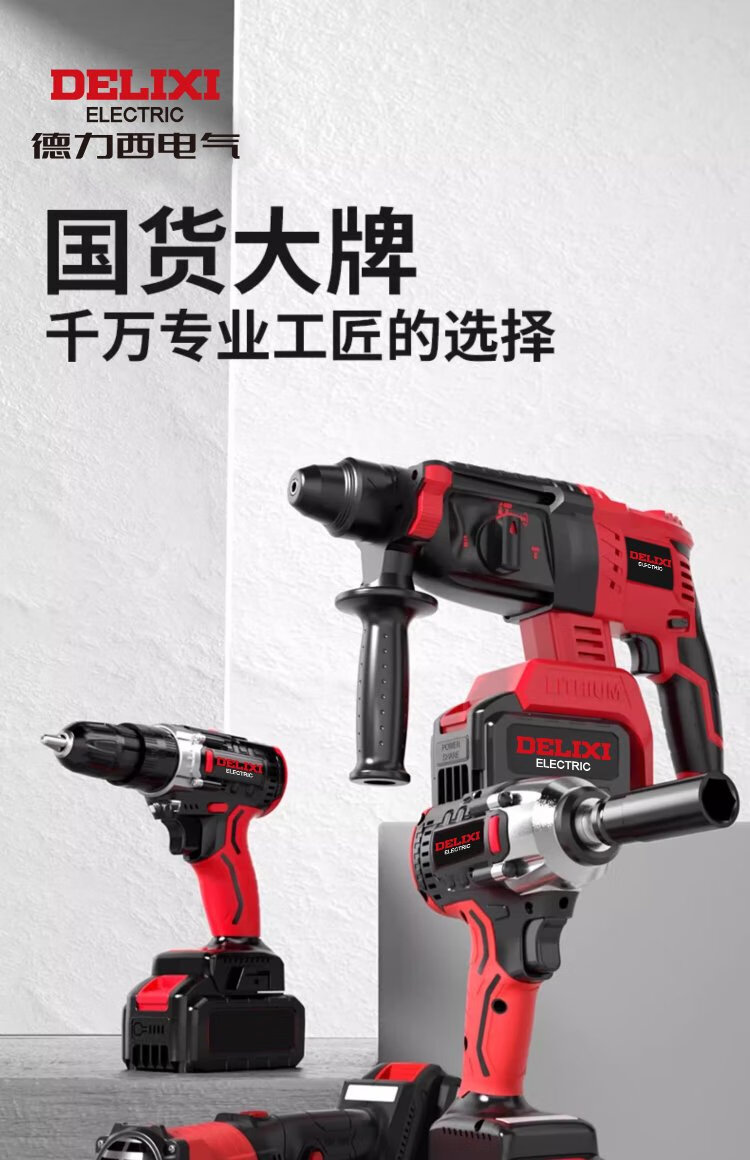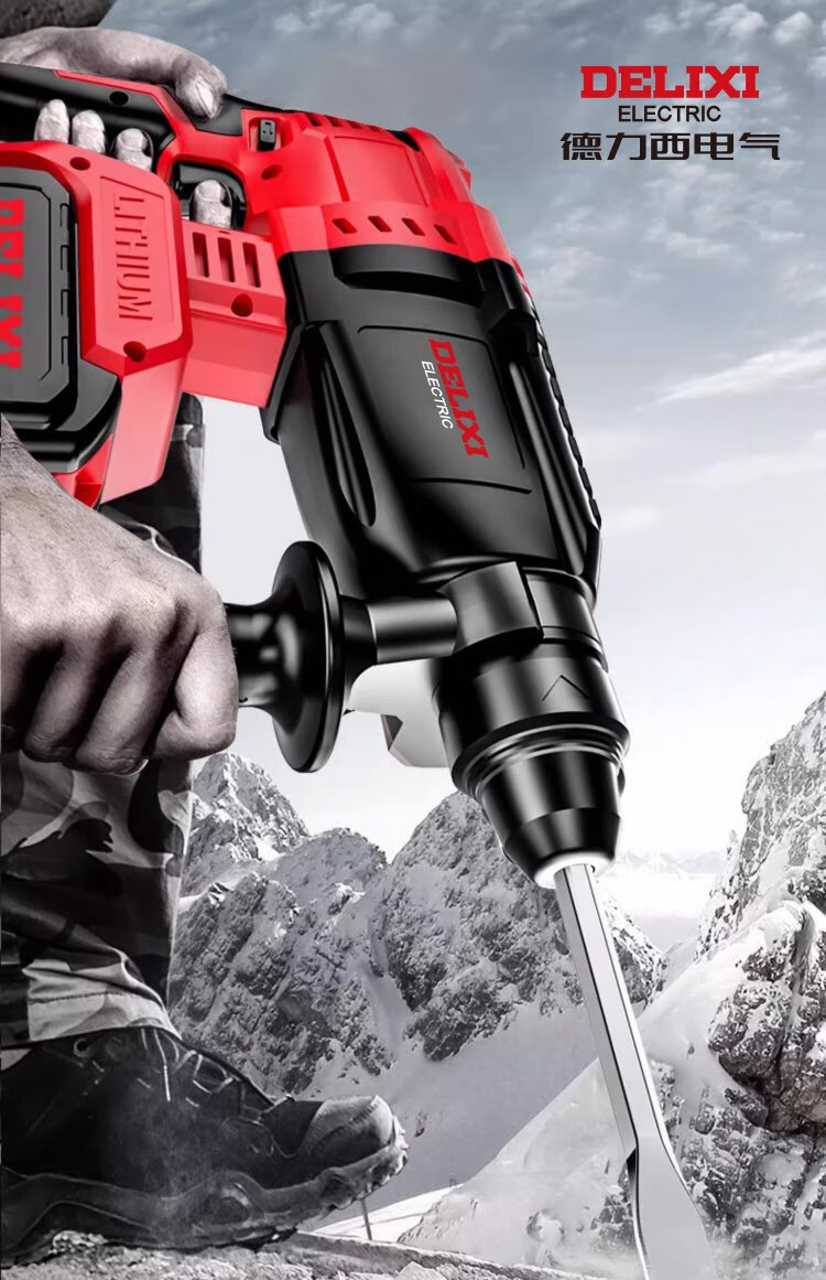 Delixi Electric brushless rechargeable electric hammer electric pick three-purpose heavy-duty wireless industrial concrete impact electric drill power tool