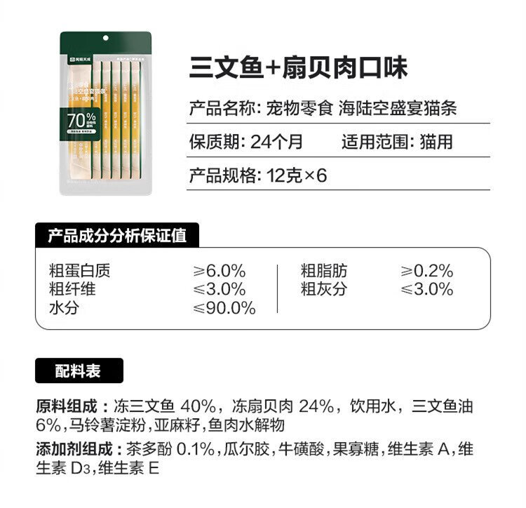 NetEase carefully selected cat snacks, cat wet food, general cat snacks for adult cats and kittens, salmon + scallop flavor 12g*6 pieces
