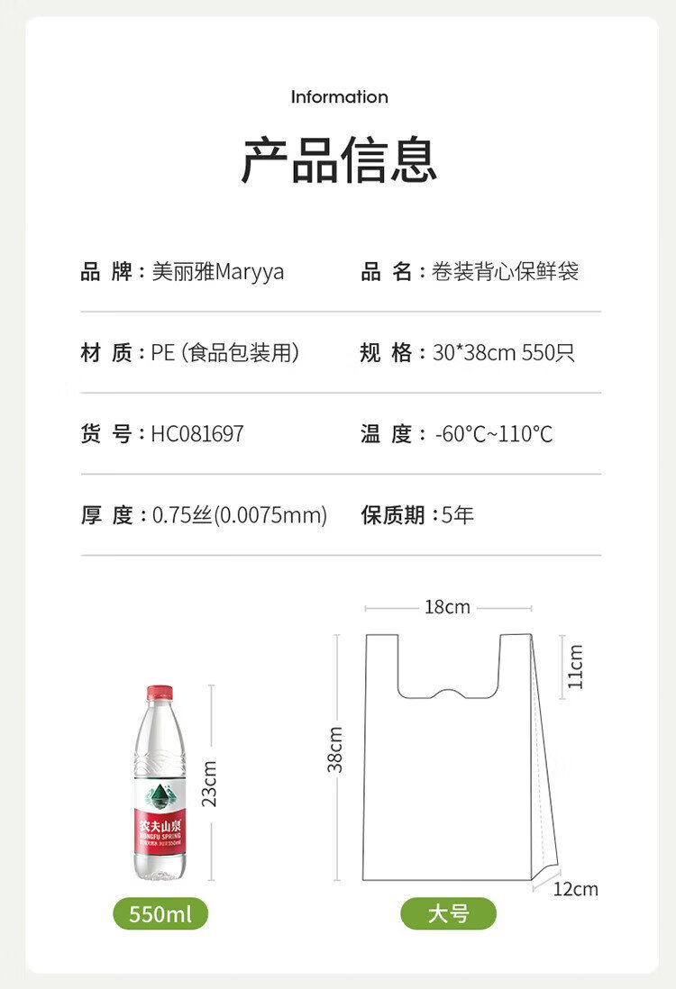 Meiya disposable fresh-keeping bags food-grade vest style 550 pieces large size 38*30cm thickened refrigerated packaging bags