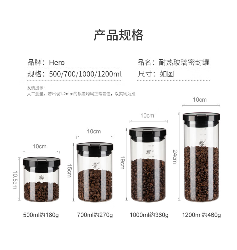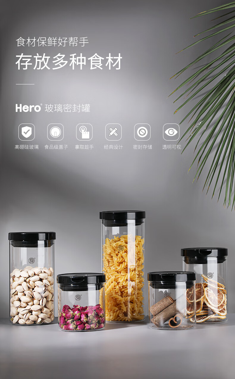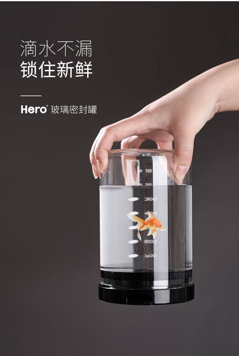 Hero glass sealed jar transparent glass bottle storage jar storage jar fresh jar tea jar portable 500ml