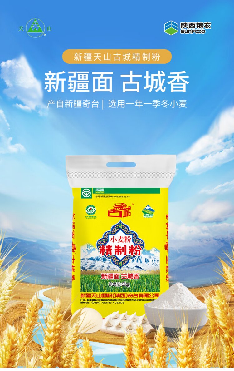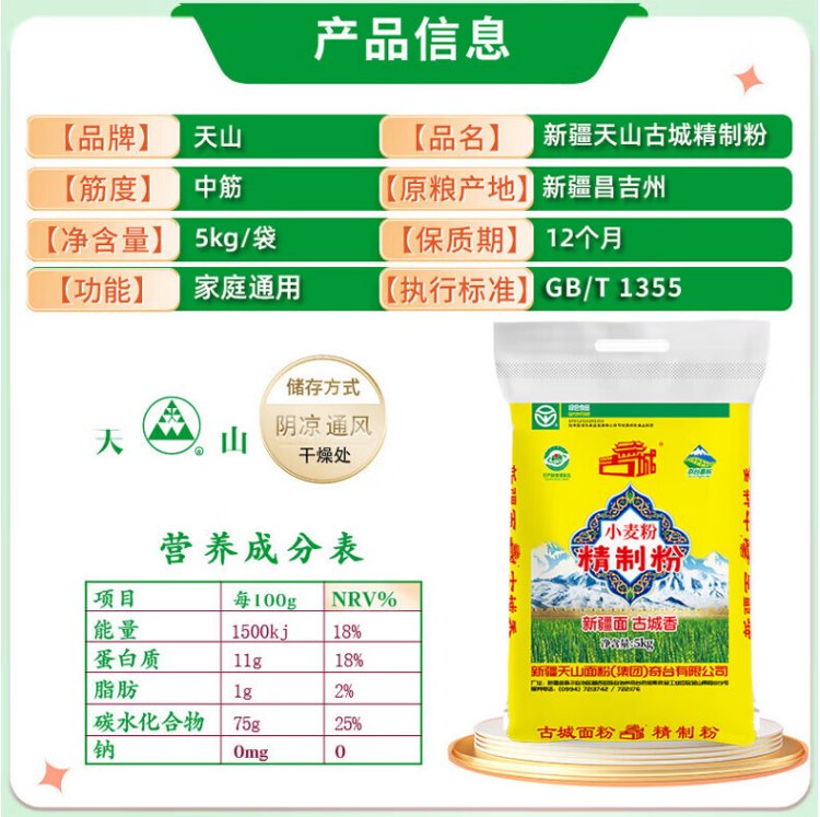 Tianshan Xinjiang flour multi-purpose flour 10 pounds household buns, steamed buns, slivers, medium-gluten general-purpose wheat flour