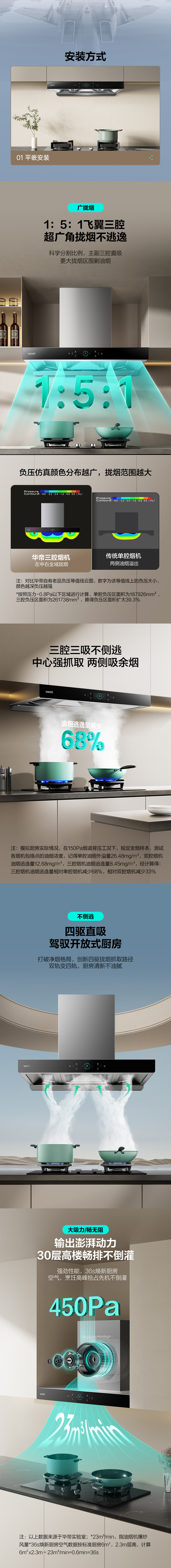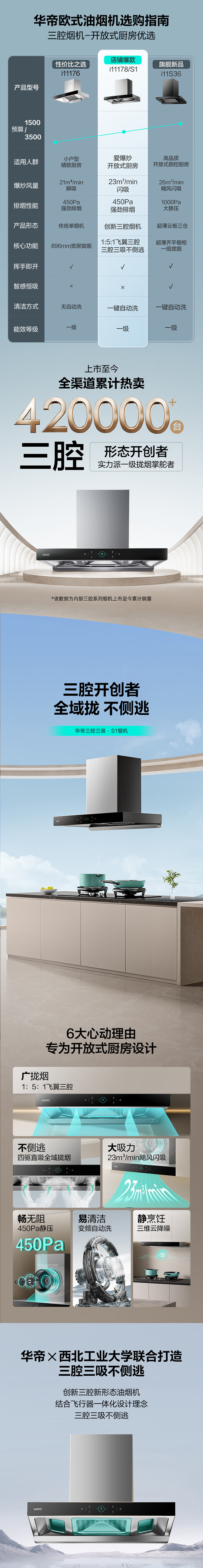 Vantage range hood official European top suction three-chamber large suction range hood 23 air volume low noise hand wave intelligent control automatic cleaning and de-exhaust range hood first level energy efficiency i11178