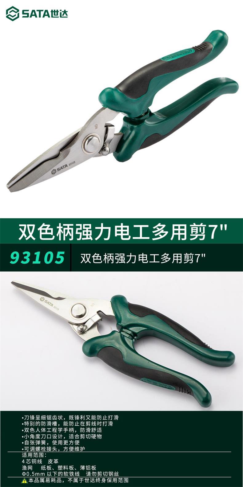 SATA Tools Electrician Scissors Cable Cutters Two-Color Handle Powerful Electrician Multi-Purpose Scissors Cable Scissors 93105