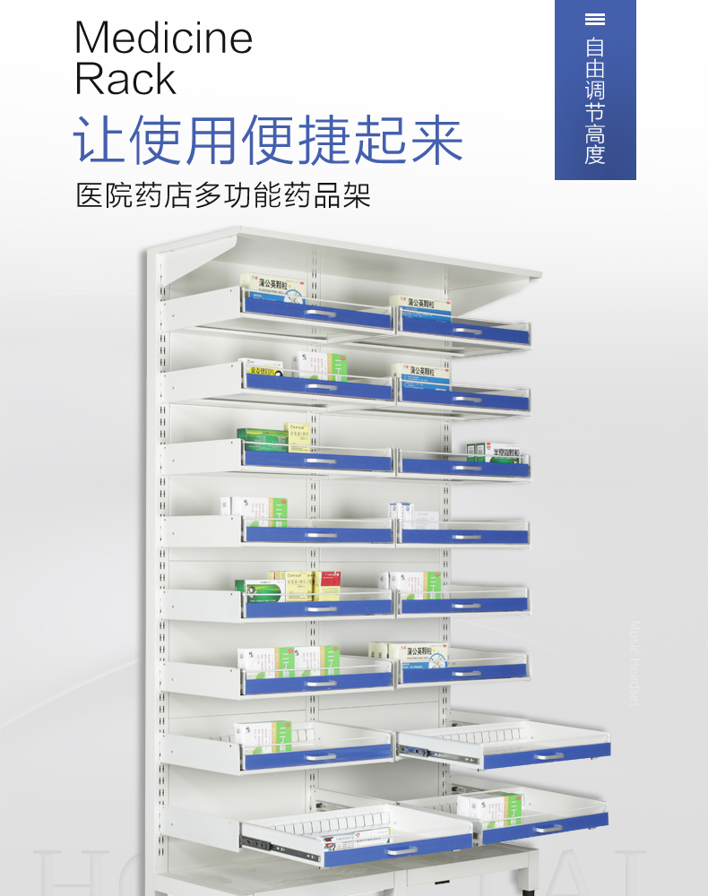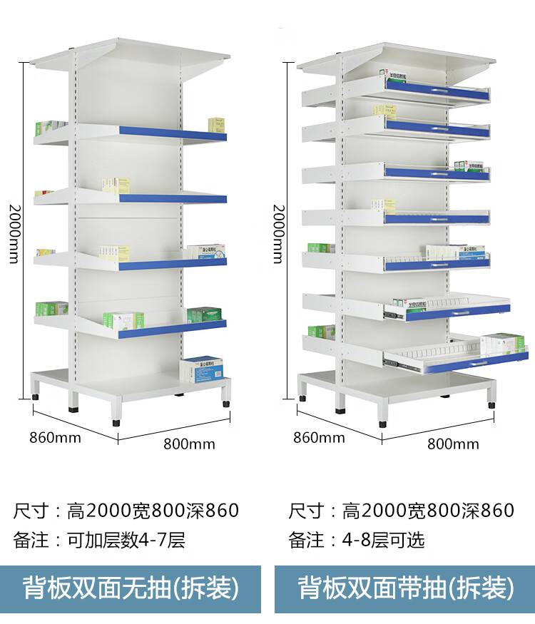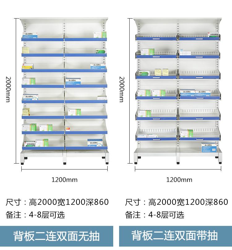 Aikoburg back panel double-sided pull-out 7-layer clinic medicine rack hospital pharmacy medicine rack single and double-sided pull-out medicine tray rack AKB-YPJ-09