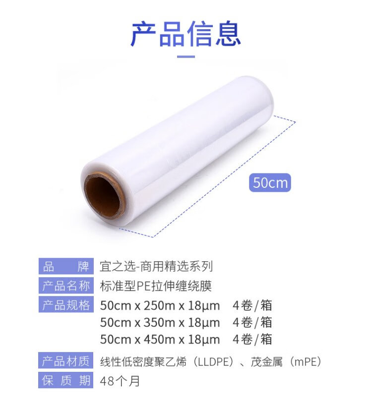 Yizhixuan wrapping film 50cm*450m film net weight 3.73kg*4 rolls moving protective film packaging film stretch film packaging industrial film full meter full weight