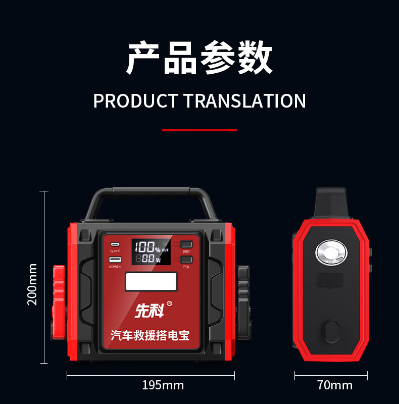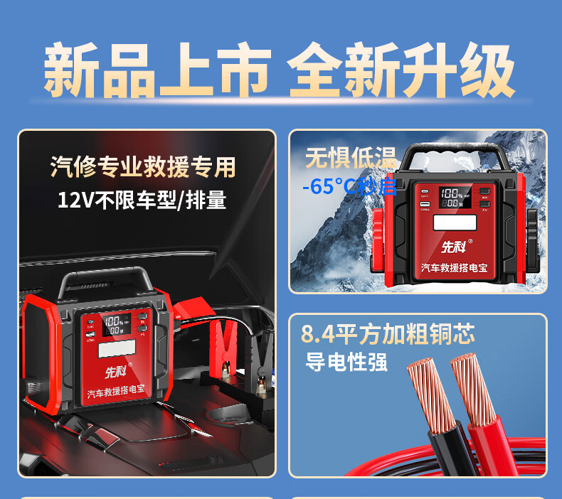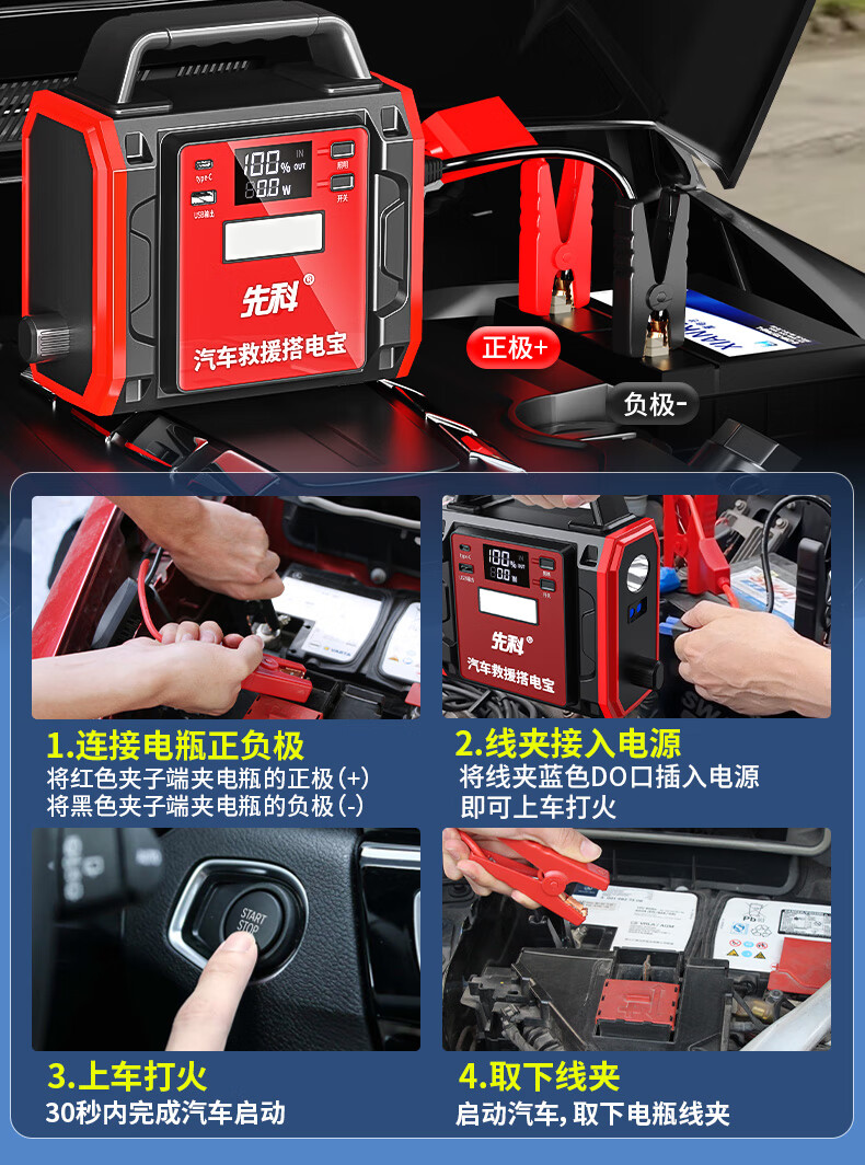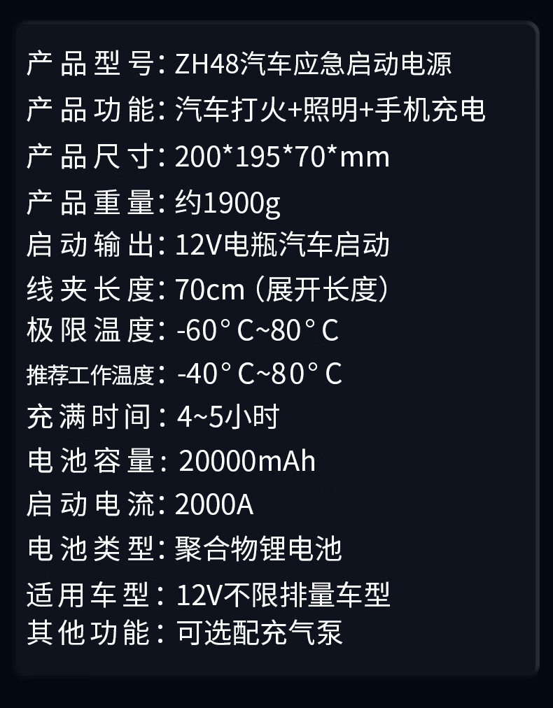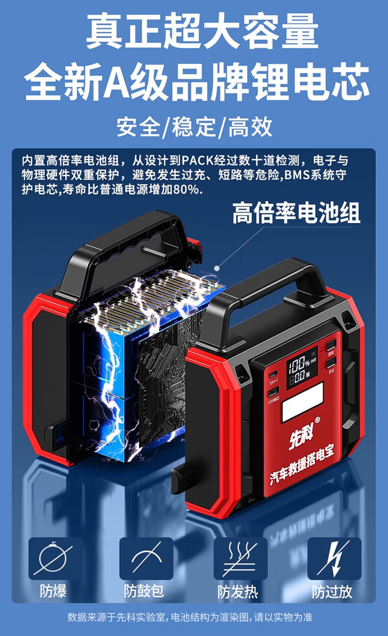 Xianke 3C certified ZH48 car emergency starting power supply 12V unlimited displacement large capacity outdoor mobile power supply rescue power bank with extended bold smart clip