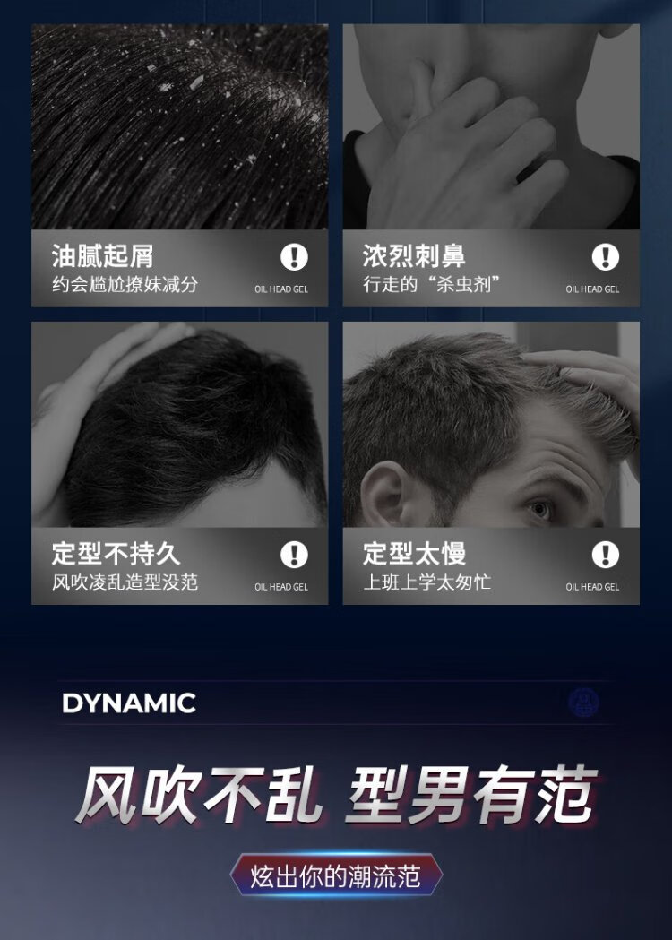 Moxiang Men's Moisturizing Styling Gel Cream Refreshing Big Back Hair Style Oil Head Cream Water Hairspray Spray Long-lasting and Quick-drying