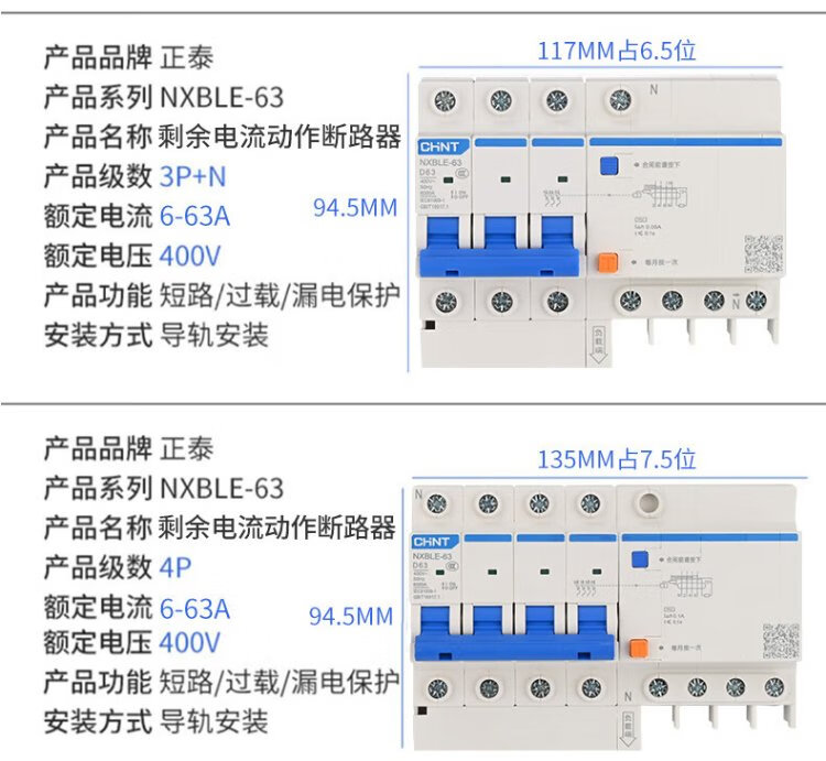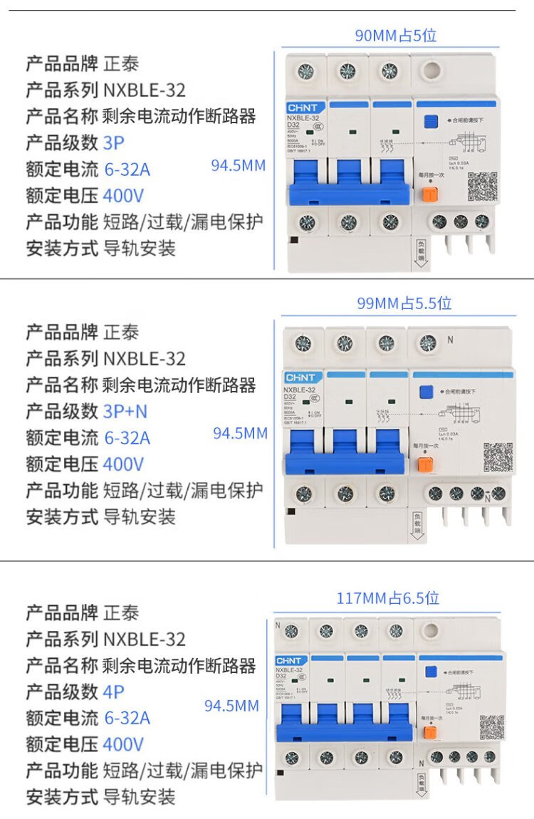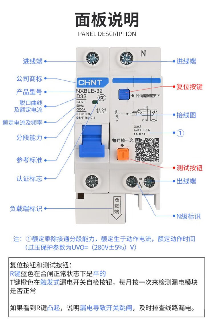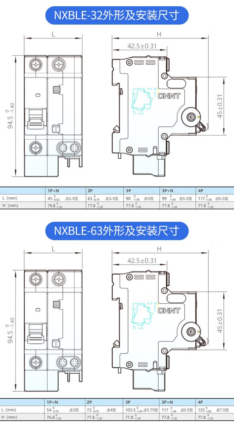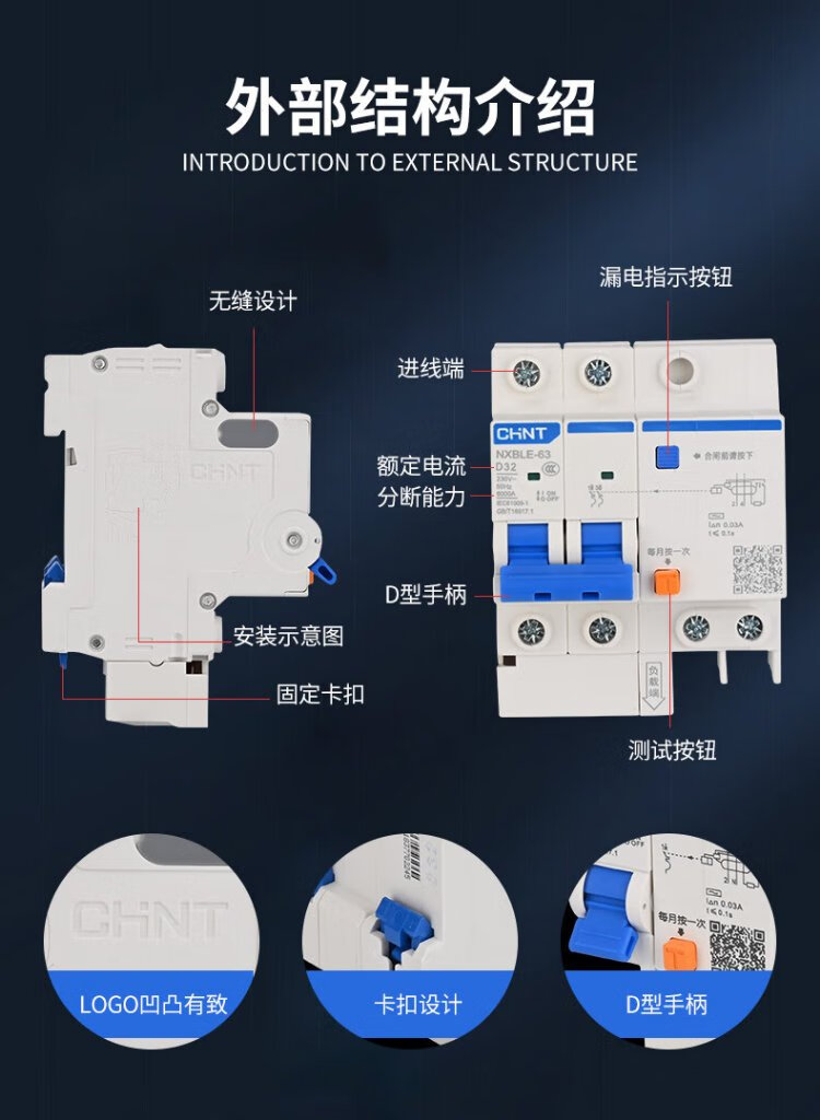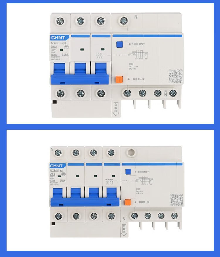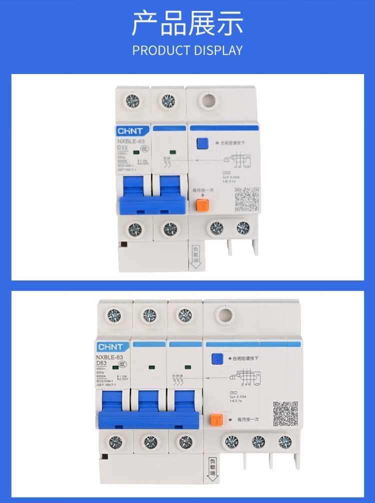 Chint (CHNT) NXBLE-63-1PN-C63-30mA-6kA small leakage protection circuit breaker leakage protection air switch 1PN 63A
