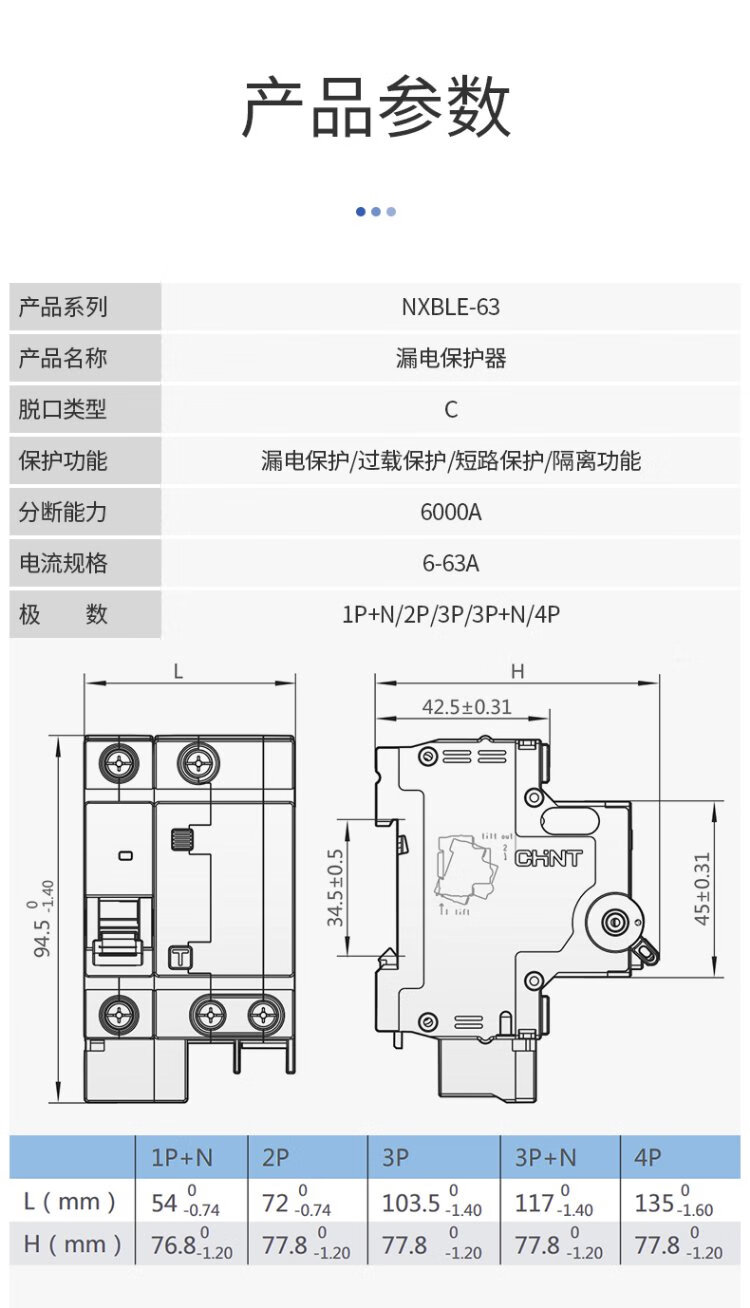 Chint NXBLE-63-4P-C63-30mA-6kA small leakage protection circuit breaker leakage protection air switch 4P