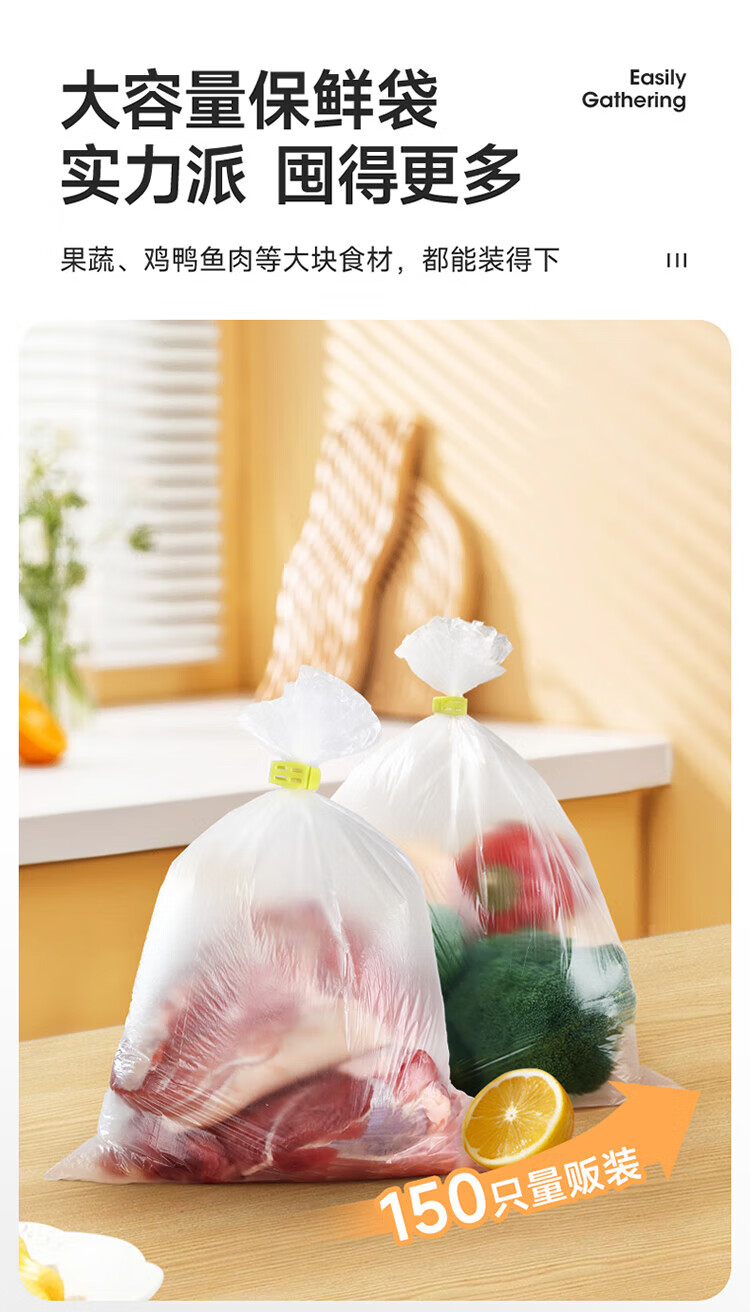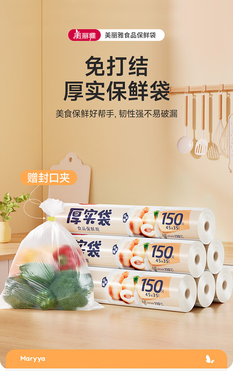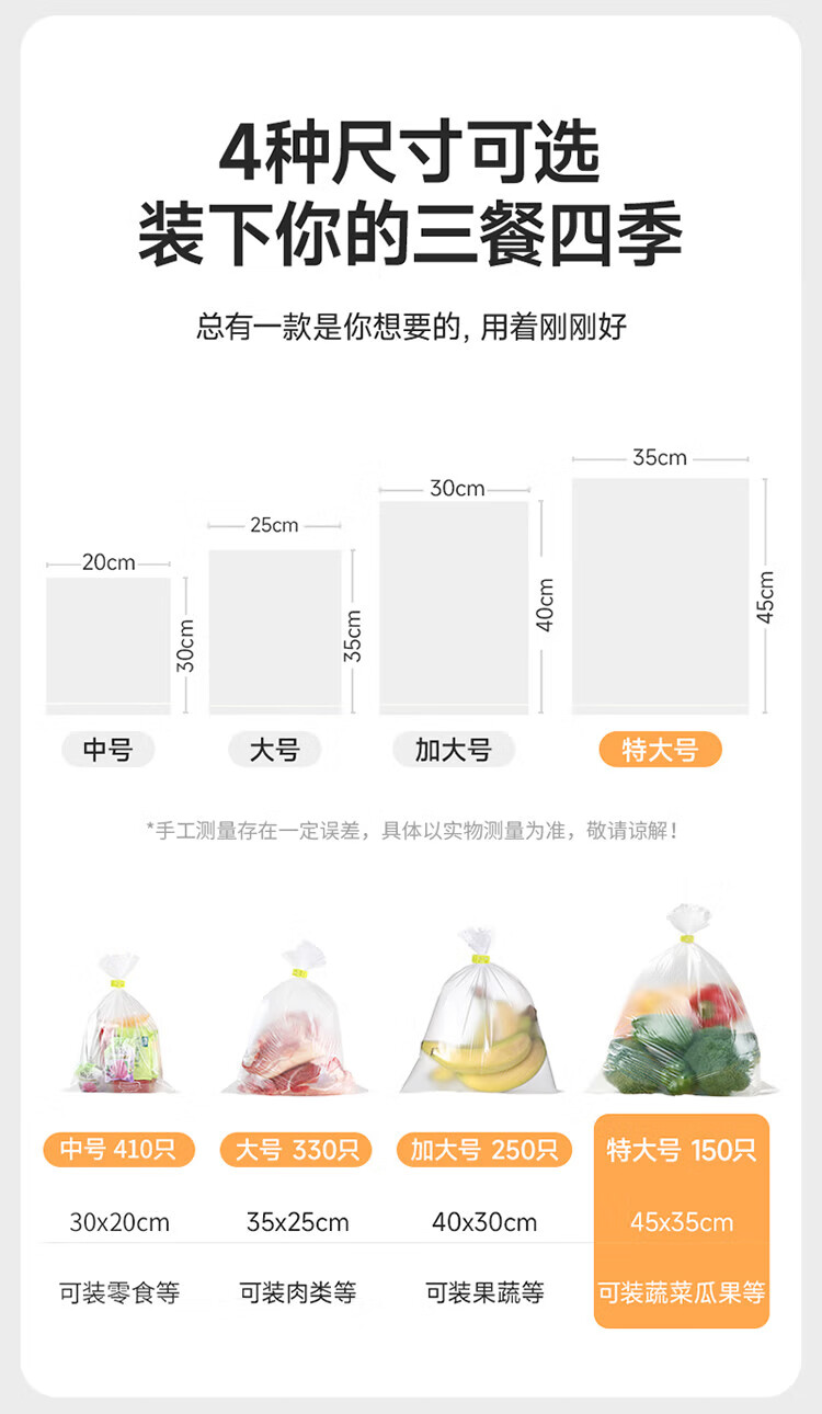 Meliya household food-grade fresh-keeping bags extra large 35*45cm 150 thick packaging bags with rolled plastic bags