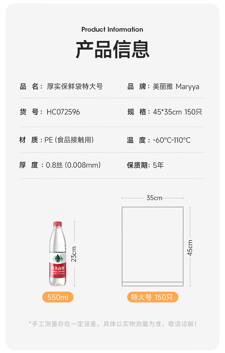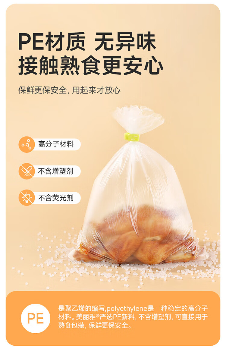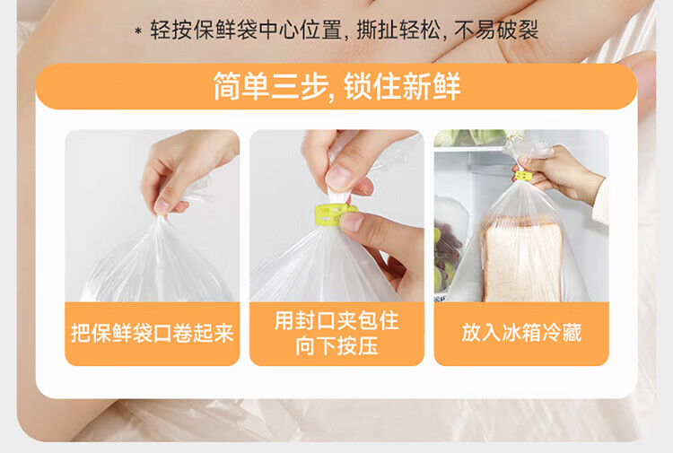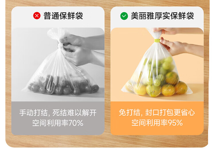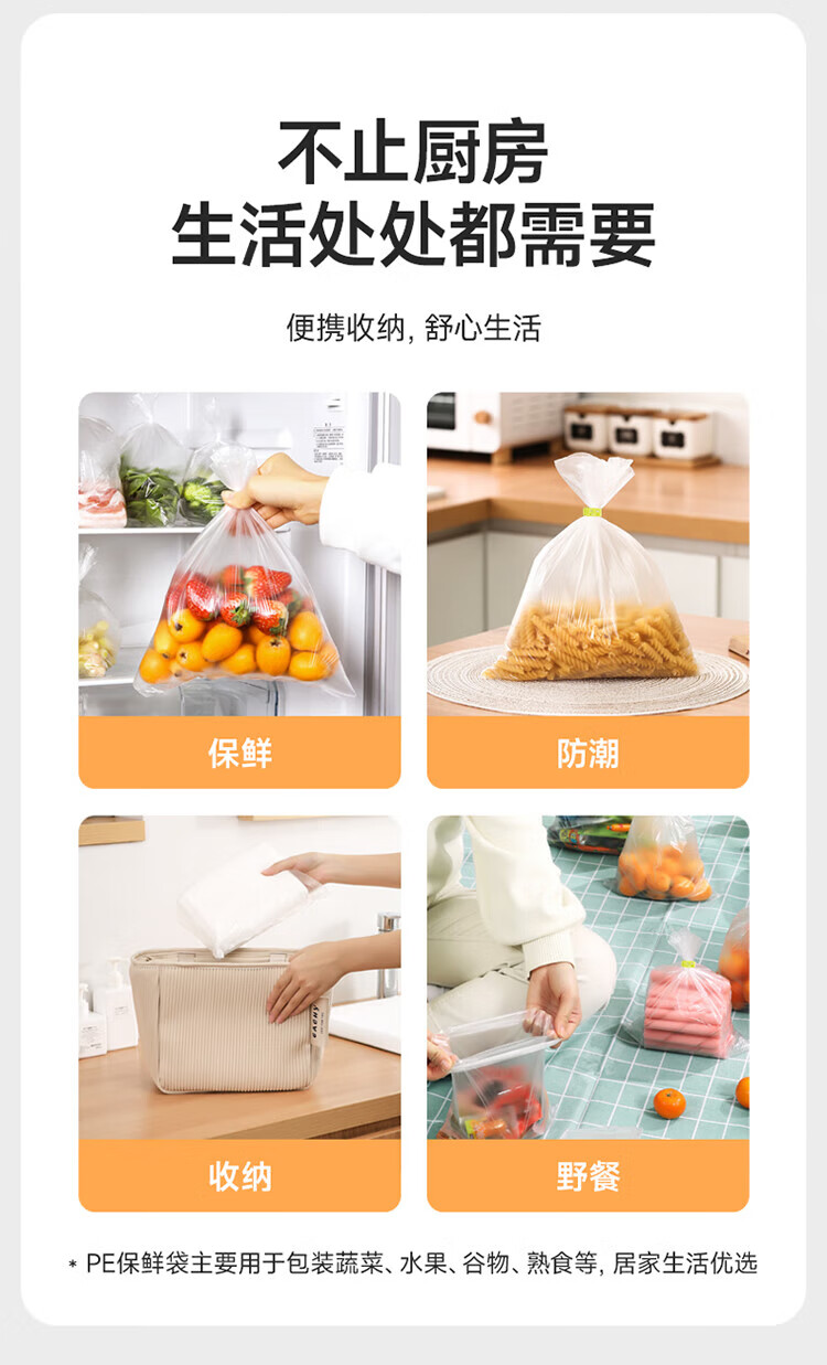 Meliya household food-grade fresh-keeping bags extra large 35*45cm 150 thick packaging bags with rolled plastic bags