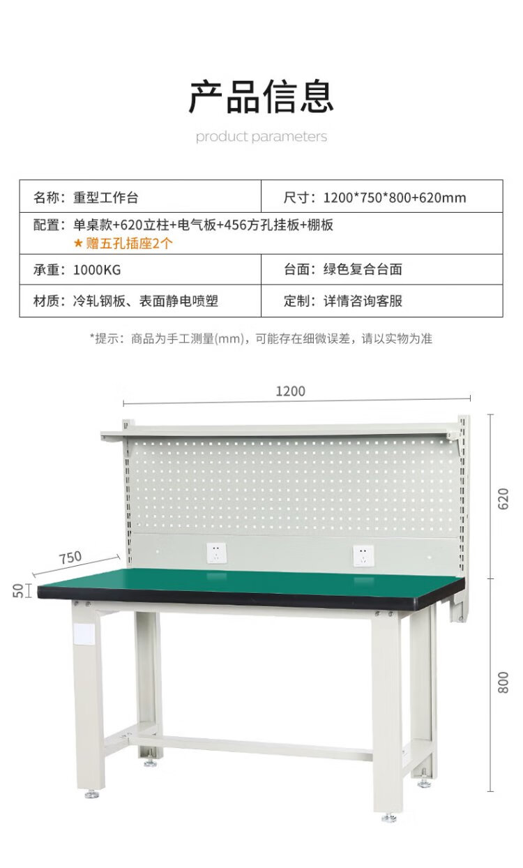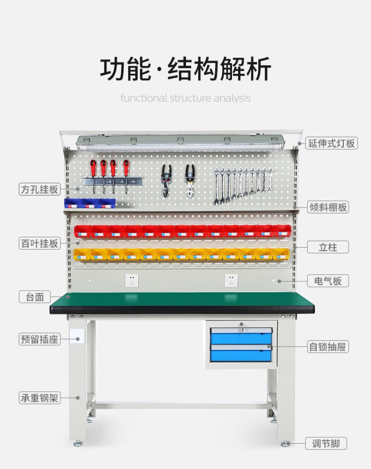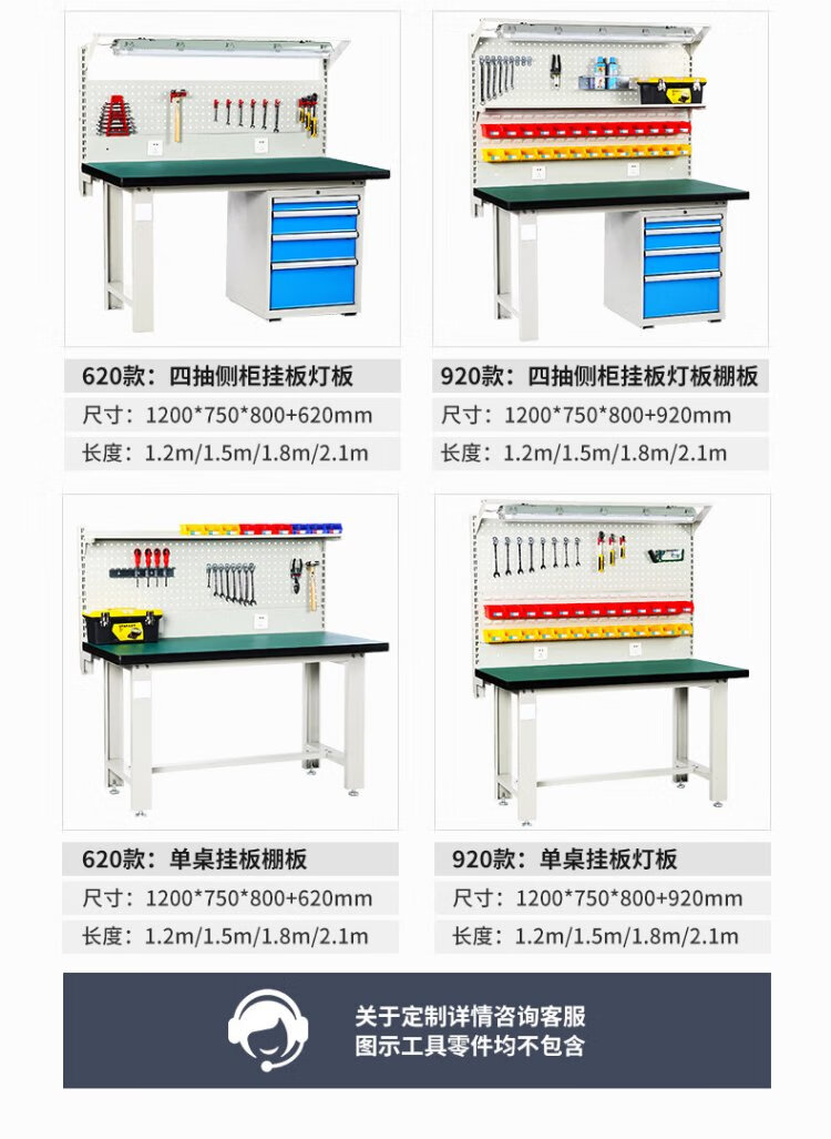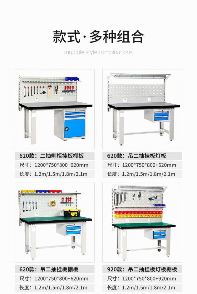 Corini heavy-duty machine repair workbench operation bench fitter bench assembly line workshop packing bench test bench with hanging plate repair tool bench can be customized 1.2 meters