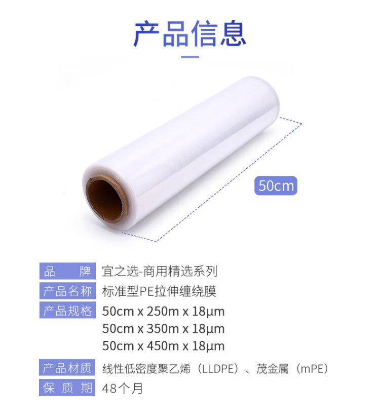 Yizhixuan stretch film 50cm*450m film net weight 3.73kg single roll moving packing film stretch film waterproof film full meter full weight