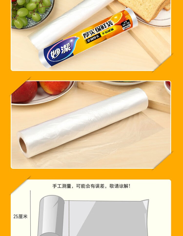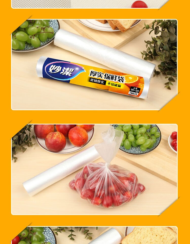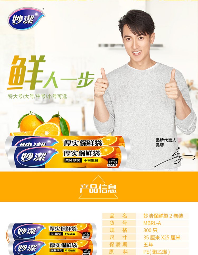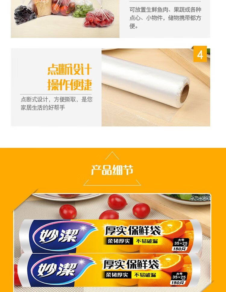 Miaojie point-break fresh-keeping bags, thickened large size, 2 rolls, 300 pieces