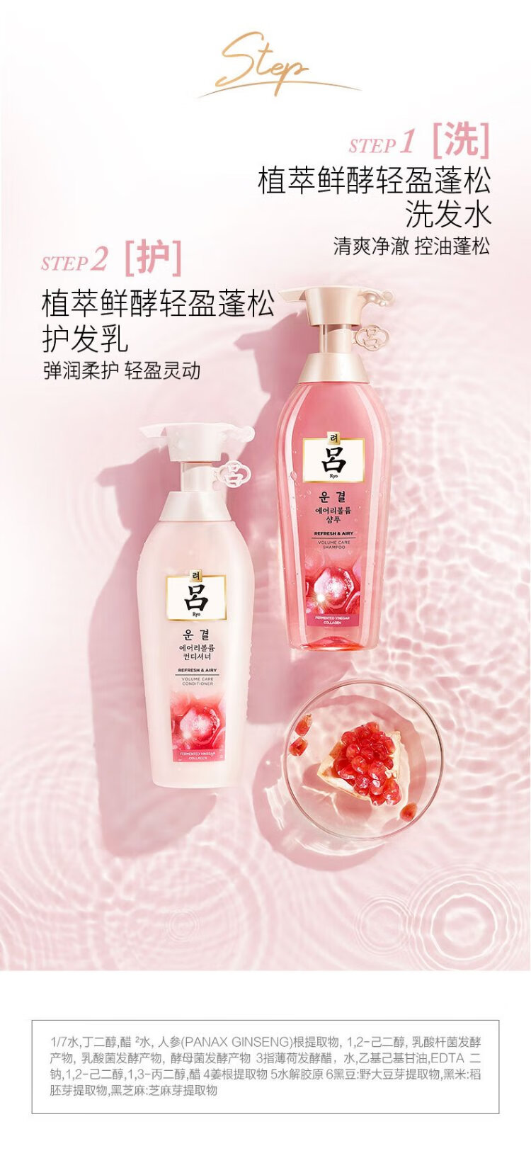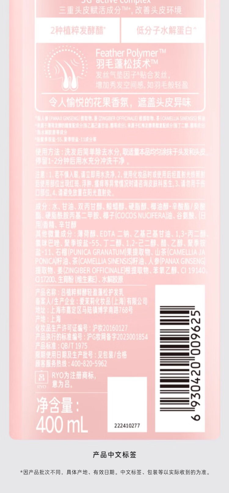 Ryo Pink Ryo Hair Conditioner 400ml Oil Control Fluffy Conditioner Refreshing, Pure, Rich and Moisturizing Hot Products