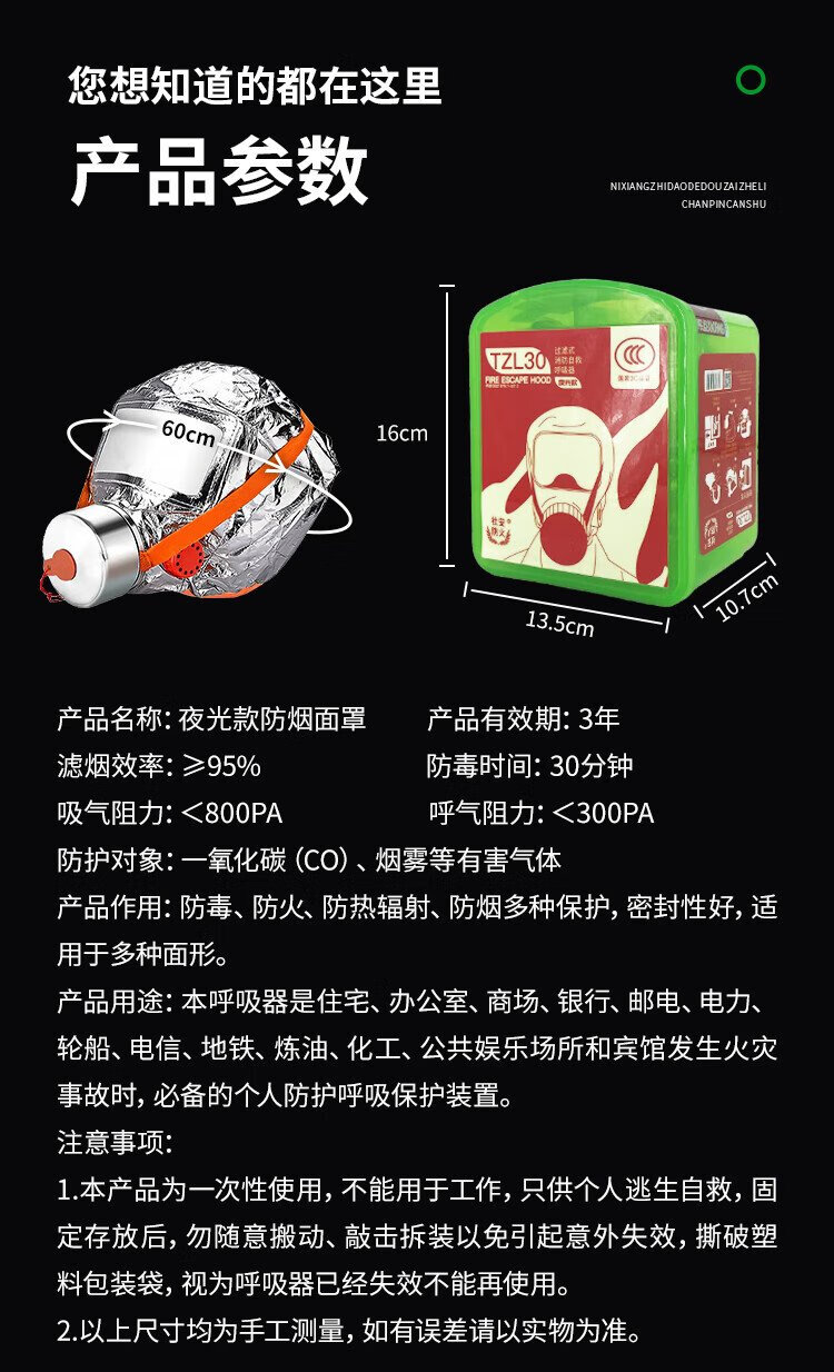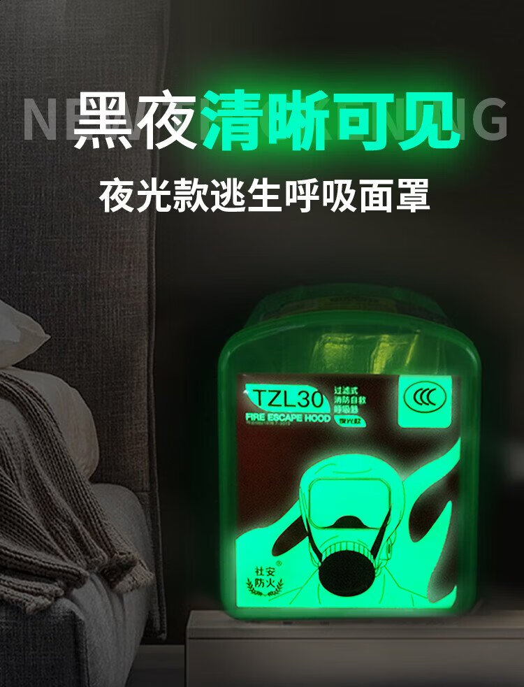 Social security fire mask anti-smoke gas mask fire escape 3c certified TZL30 self-rescue respirator household luminous model