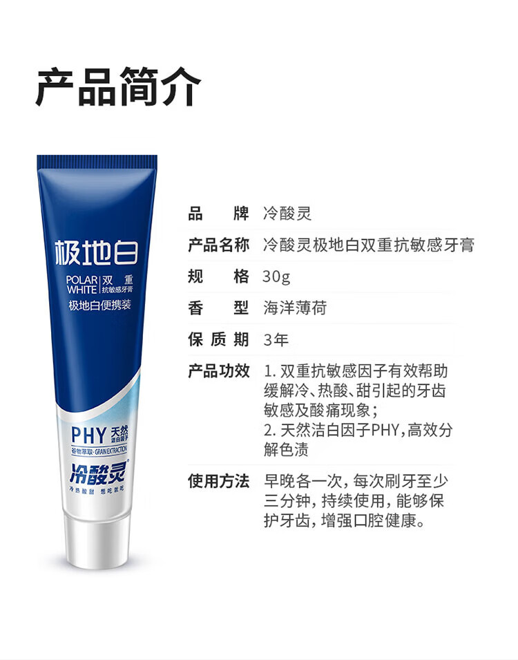 Lengsuanling Jingdong Trial Polar White Toothpaste 30g Portable Pack
