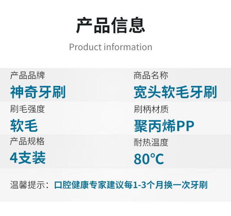 Magic toothbrush wide-head soft-bristled toothbrush for adults, ladies, and men, household, individually packaged, wide-faced toothbrush, 4 pieces