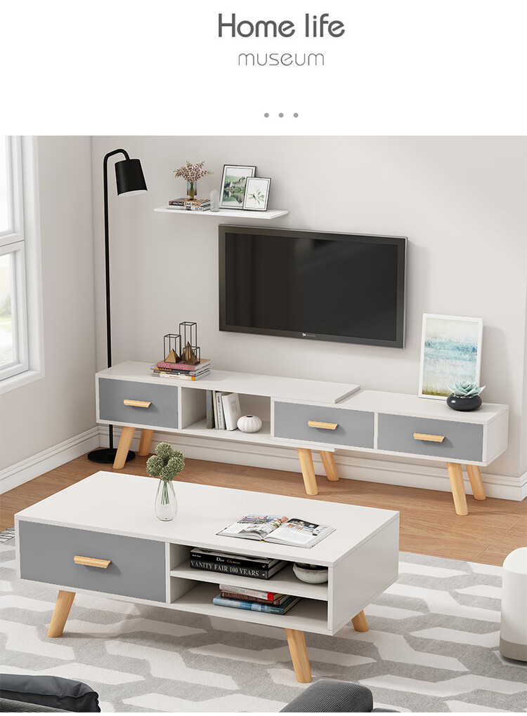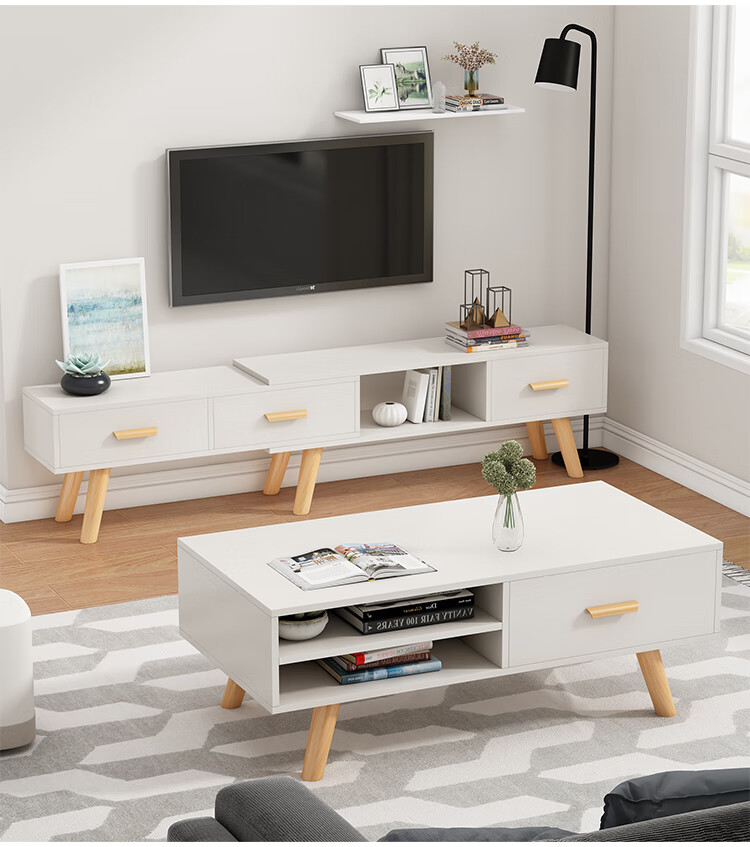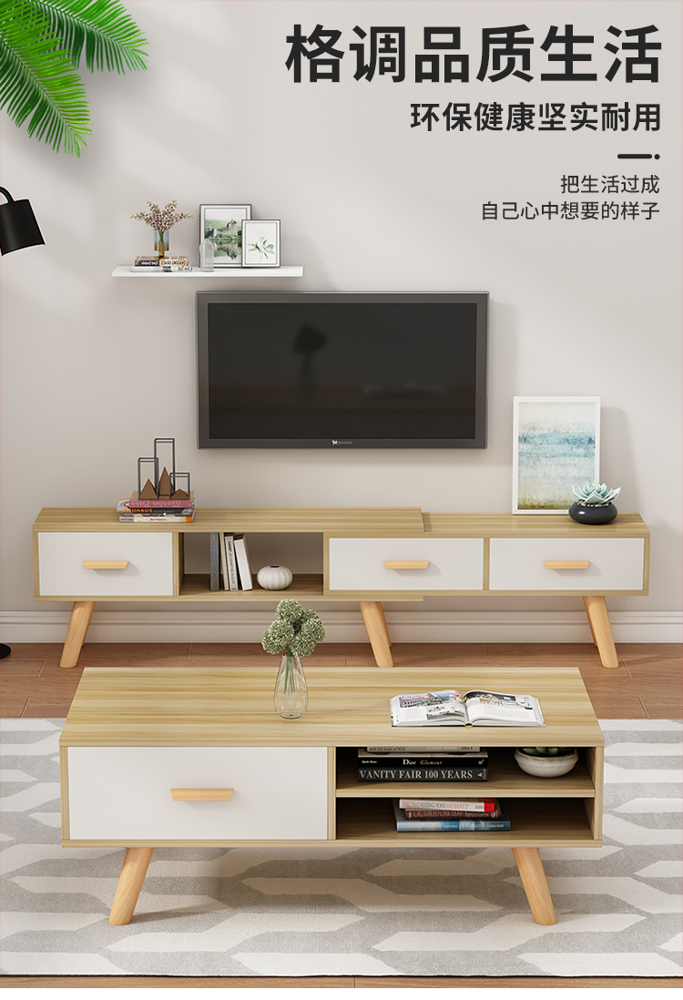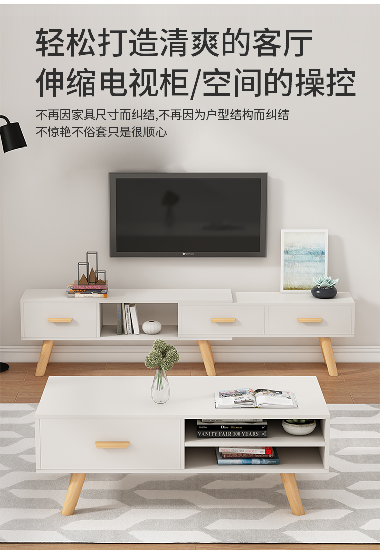 Coolin TV cabinet simple Nordic small apartment living room bedroom storage furniture retractable TV cabinet warm white