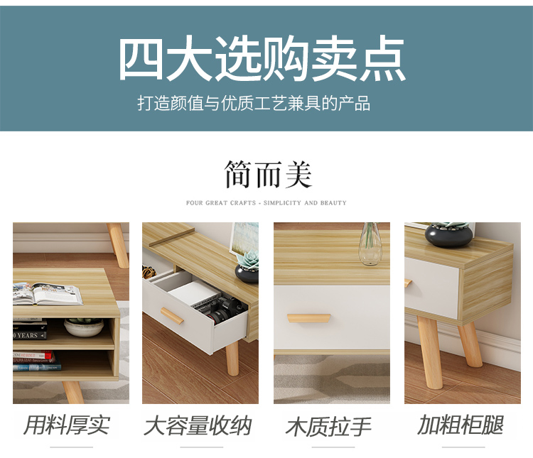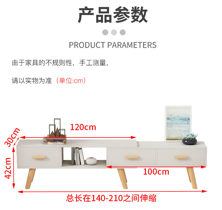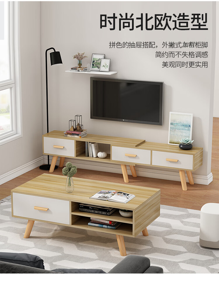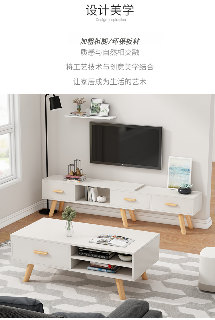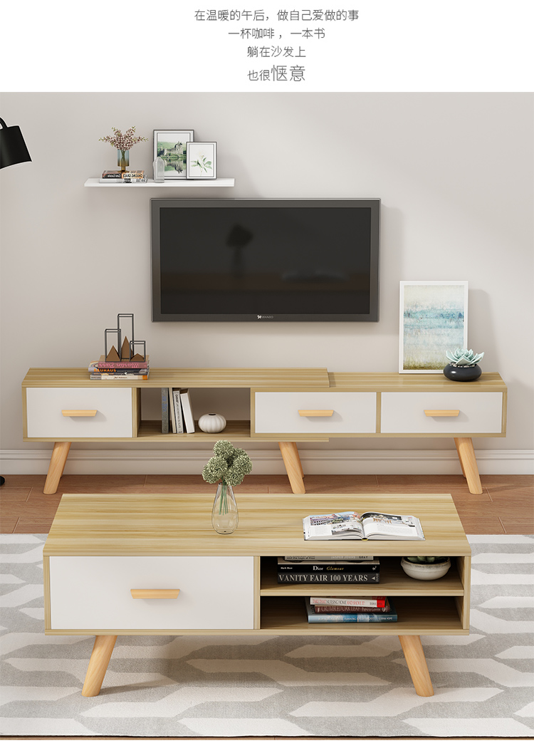 Coolin TV cabinet simple Nordic small apartment living room bedroom storage furniture retractable TV cabinet warm white