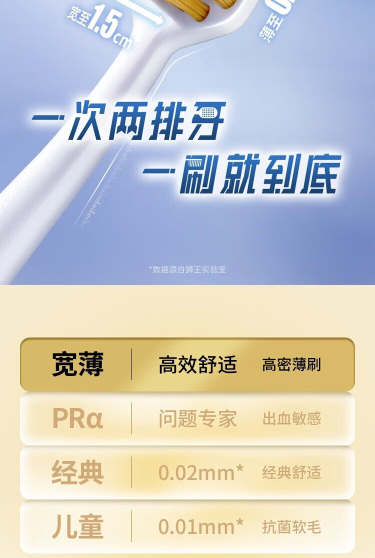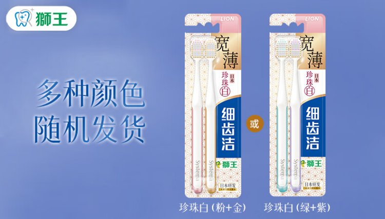Lion Fine Teeth Cleaner 61 holes wide and thin pearl white toothbrush 2 pack soft bristles deep cleaning wisdom teeth wide head