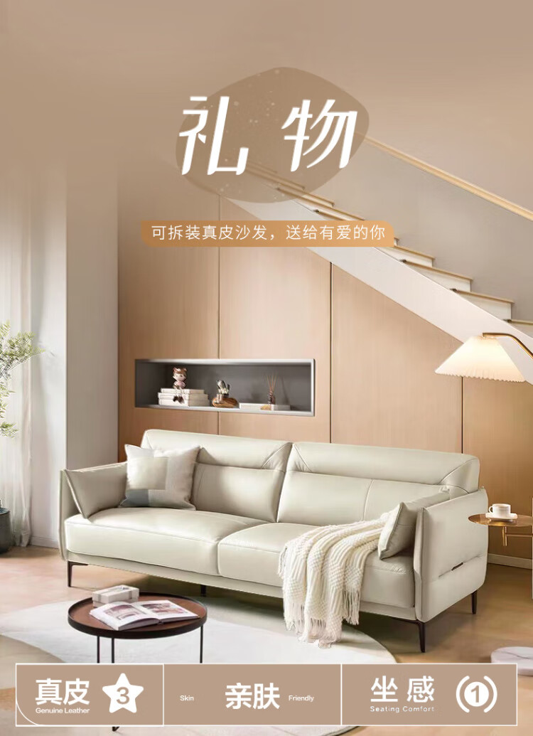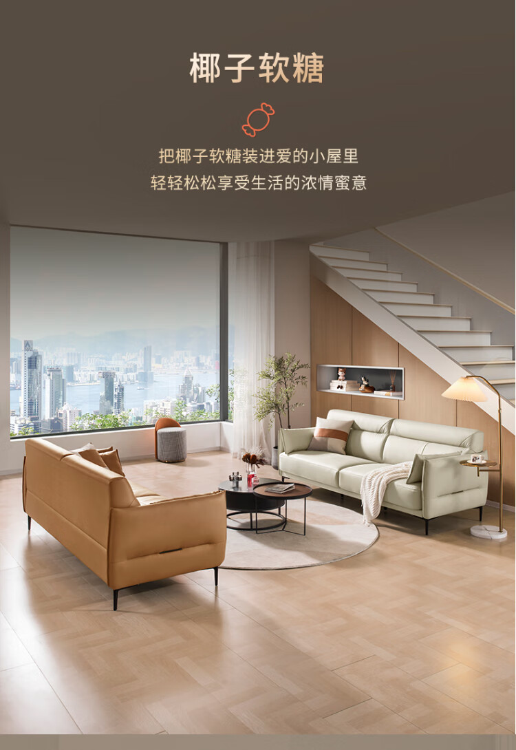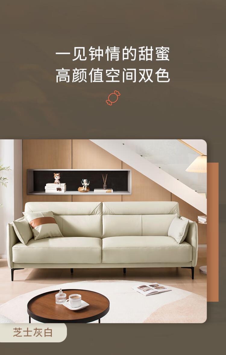 Gujia Home Furnishing Store's Same Style National Home Coconut Fudge Sofa Sofa Living Room Sofa 1119 Cheese Gray White Three-Seat