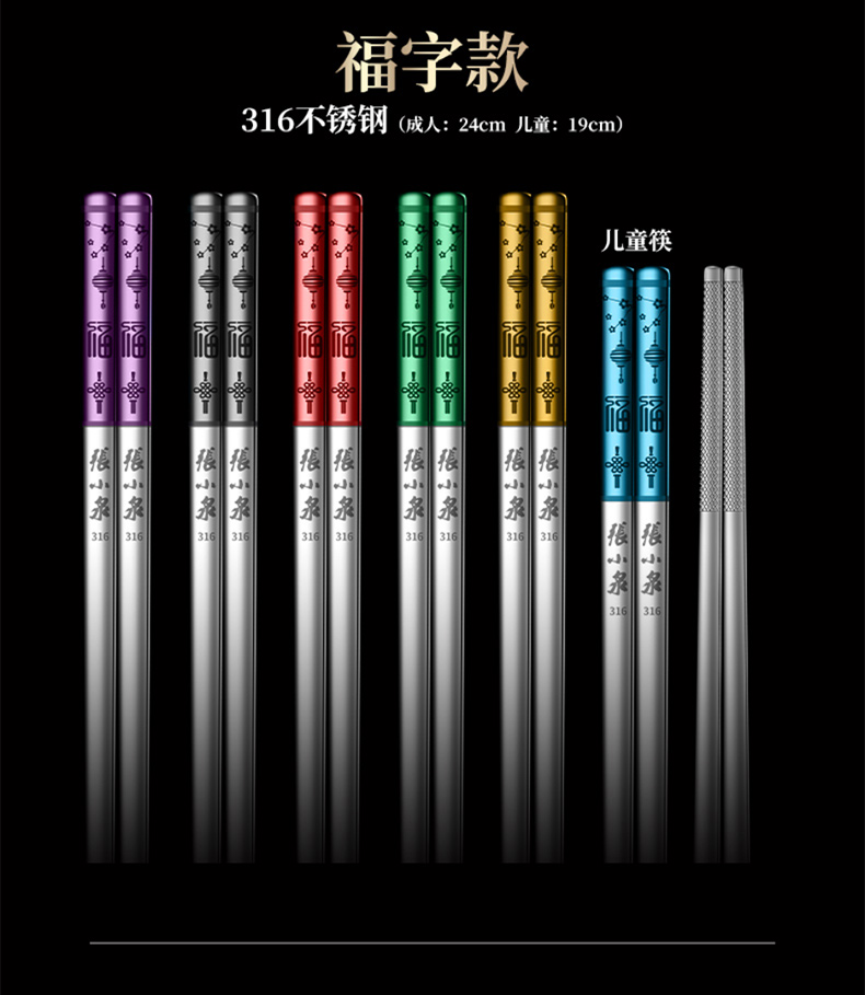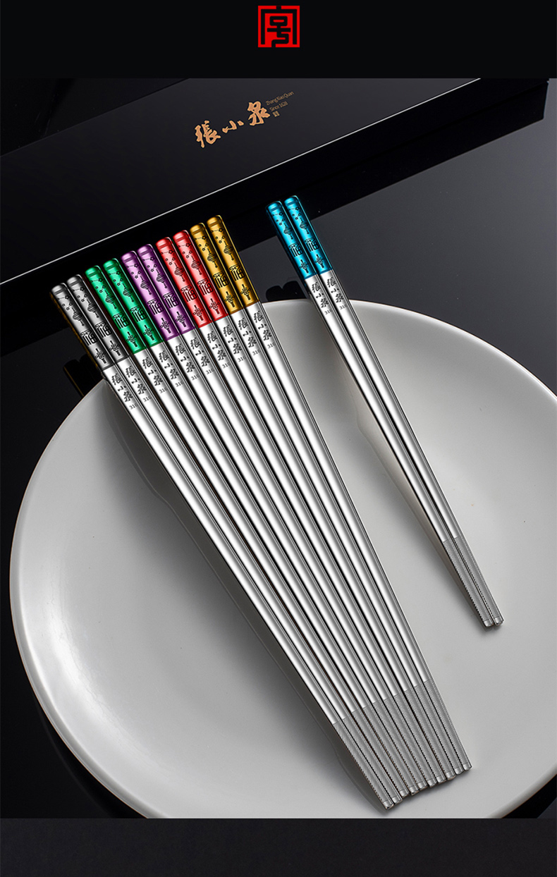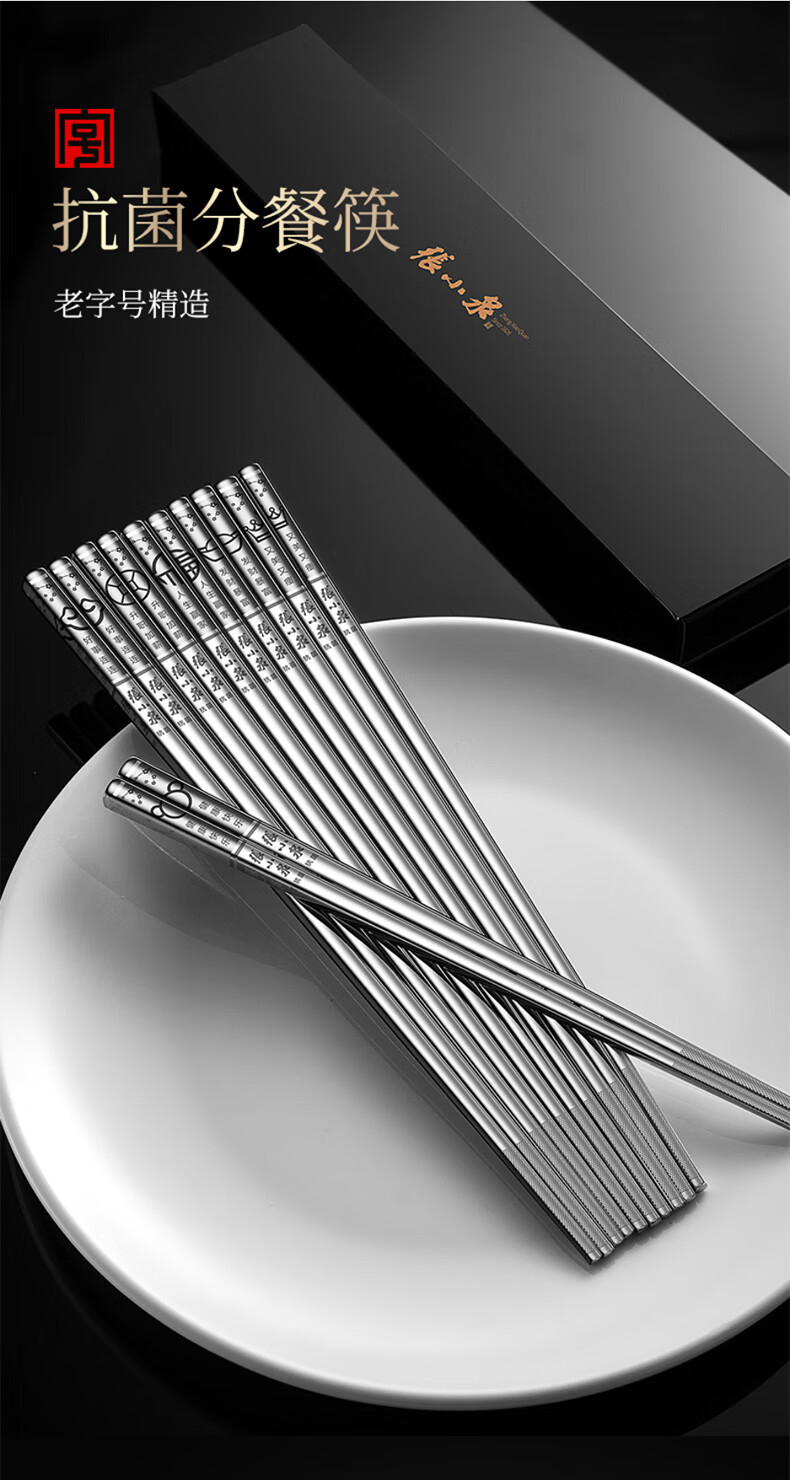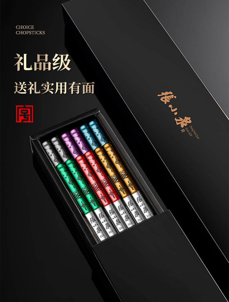 Zhang Xiaoquan 316 stainless steel chopsticks gift box, household non-slip meal-sharing chopsticks, six pairs (including 1 pair of children's chopsticks) 24CM